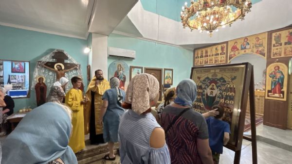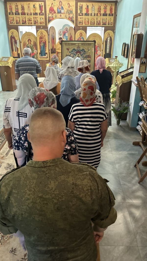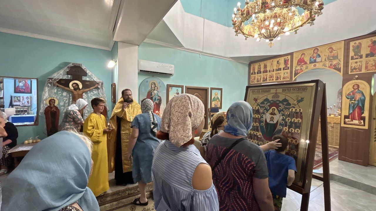 После литургии был отслужен молебен. Собравшиеся приложились к иконе и мощам, вознося молитвы о мире, здравии и укреплении христианского духа у наших воинов.
