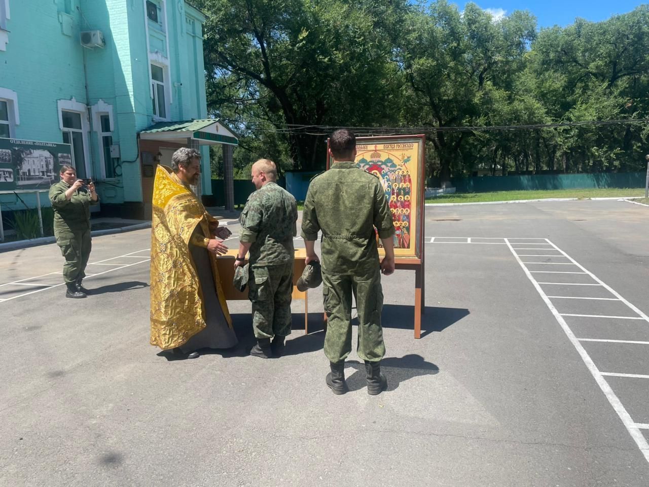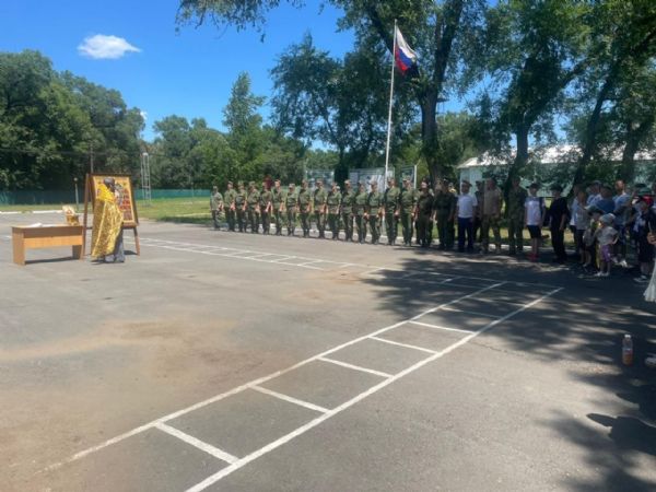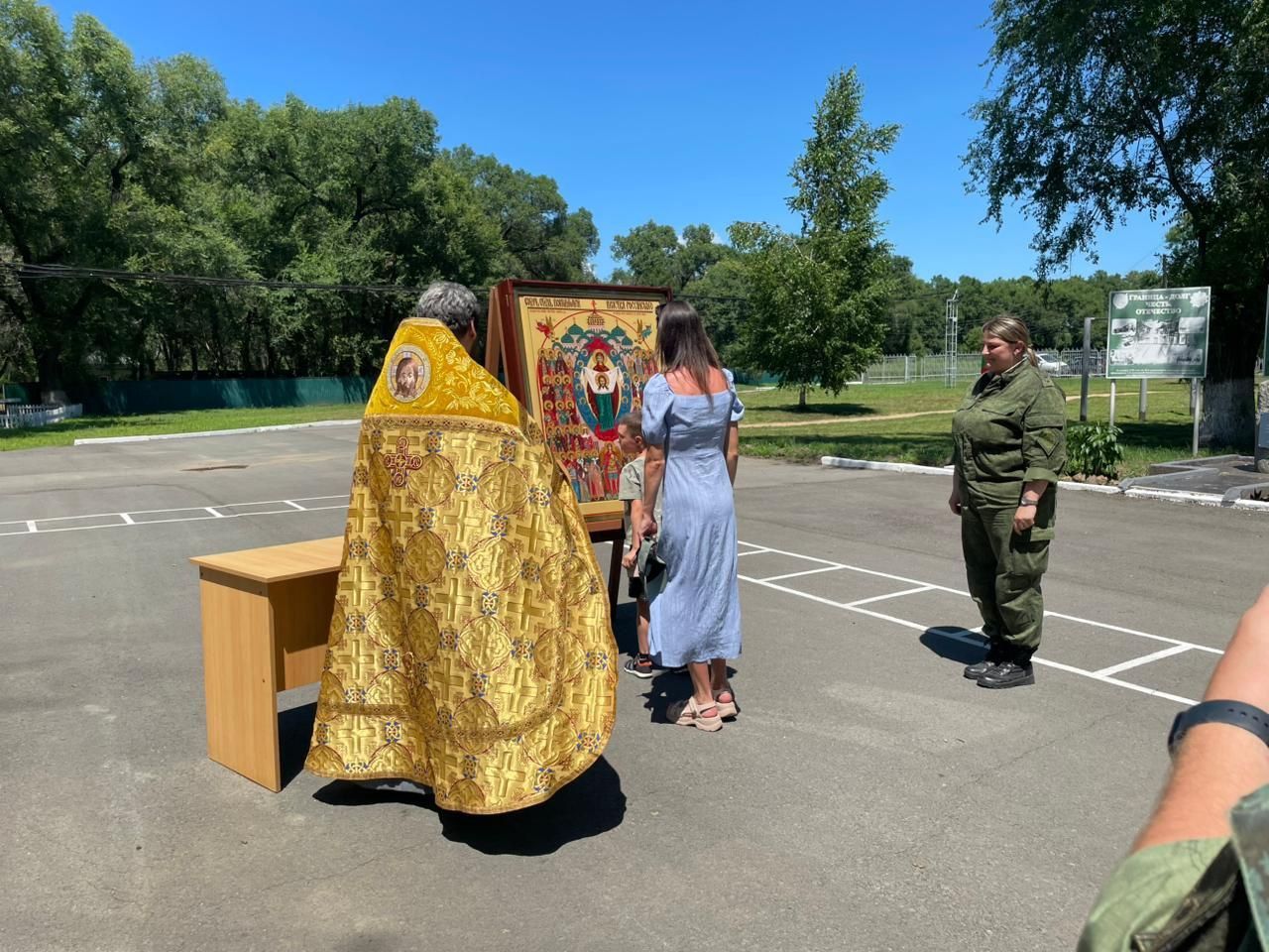 Молебен на плацу заставы совершил благочинный Уссурийского благочиния, руководитель епархиального отдела по взаимодействию с казачеством протоиерей Андрей Машанов. Благочинному сослужил настоятель храма Покрова Пресвятой Богородицы с. Покровка протоиерей Димитрий Федорин.