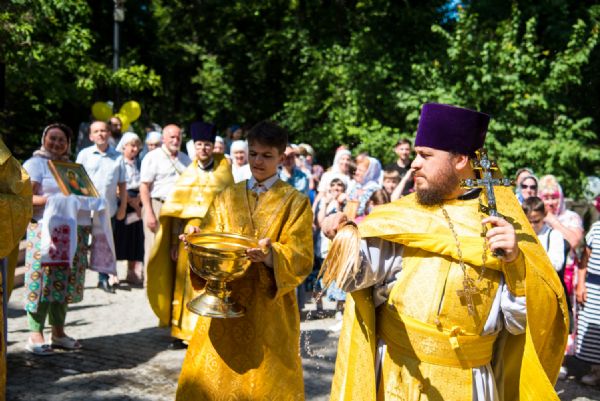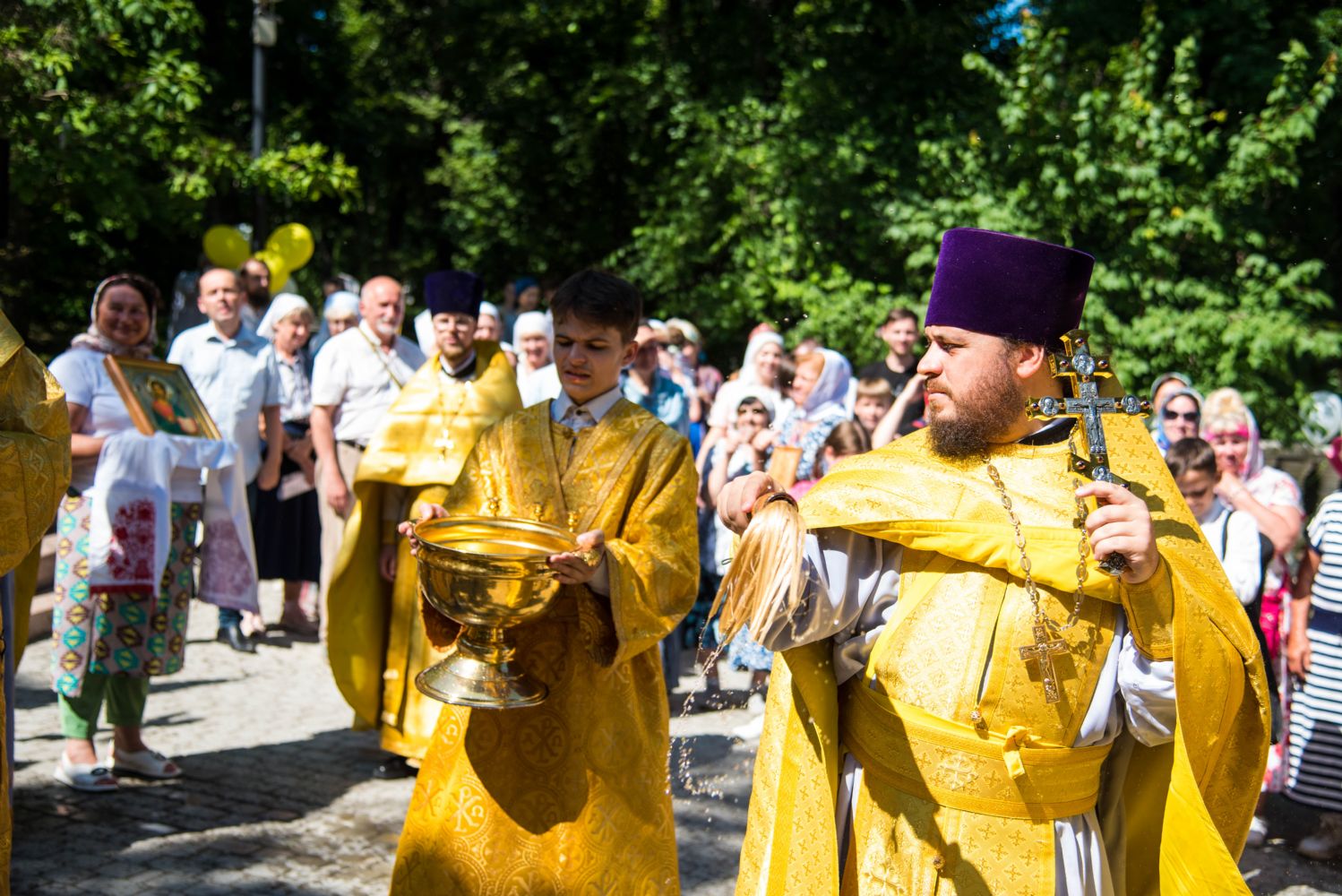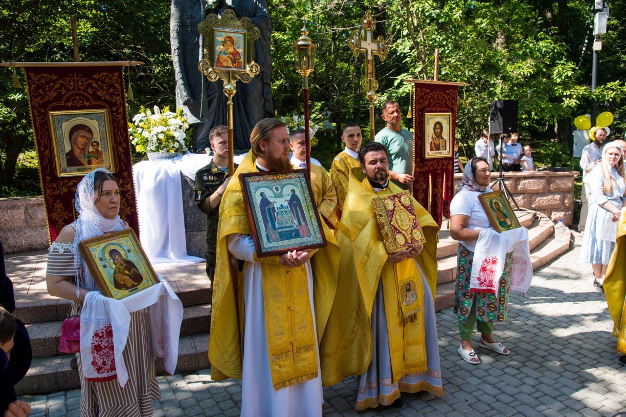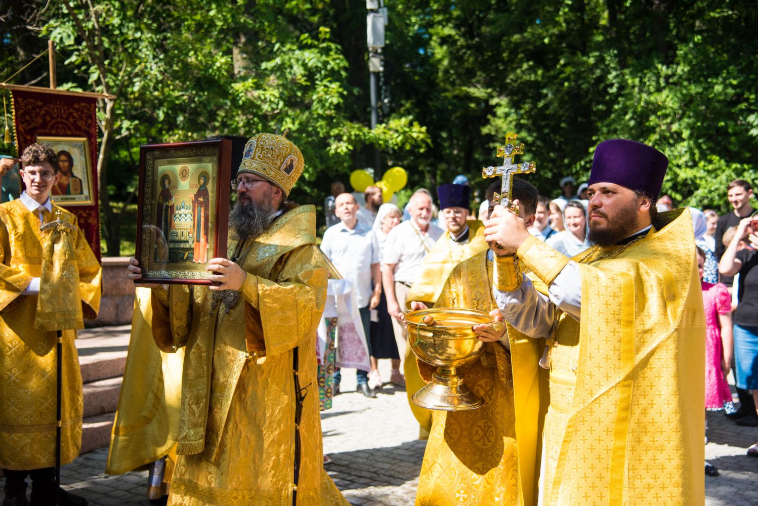 После Литургии все молящиеся прошли крестным ходом к памятнику благоверным князю Петру и княгине Февронии, установленному в центральной части Покровского парка и украшенному по случаю праздника. Здесь был совершён водосвятный молебен с прошениями о помощи и заступничестве перед Богом в различных нуждах и бедах, связанных с браком, семейной жизнью и воспитанием детей.