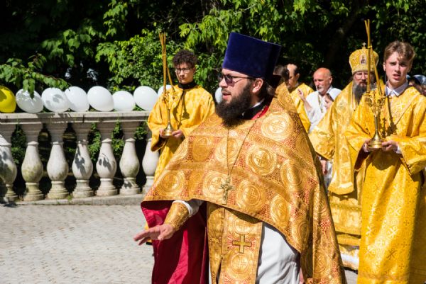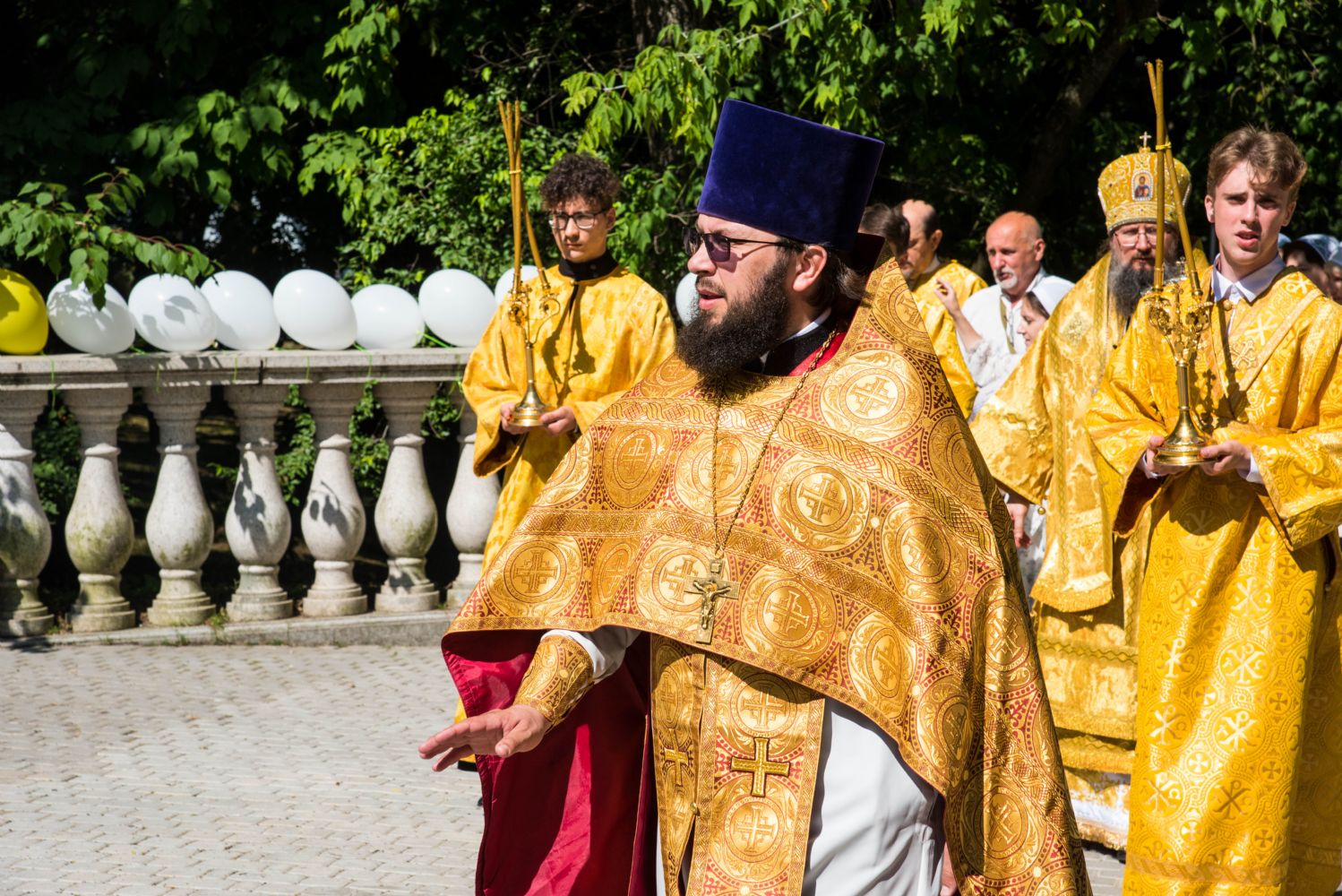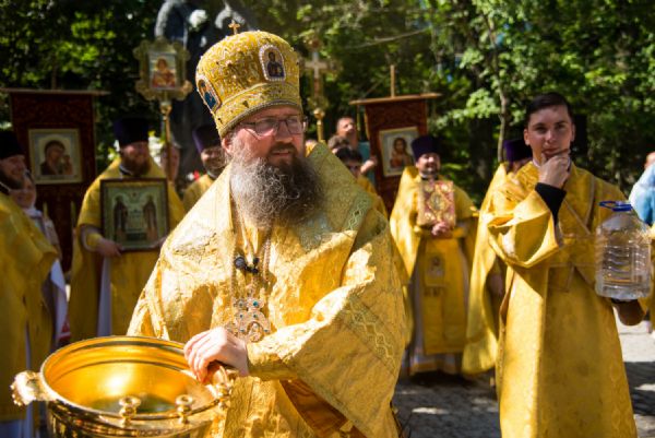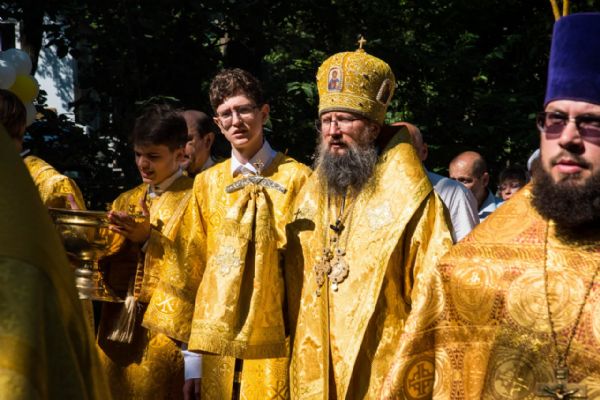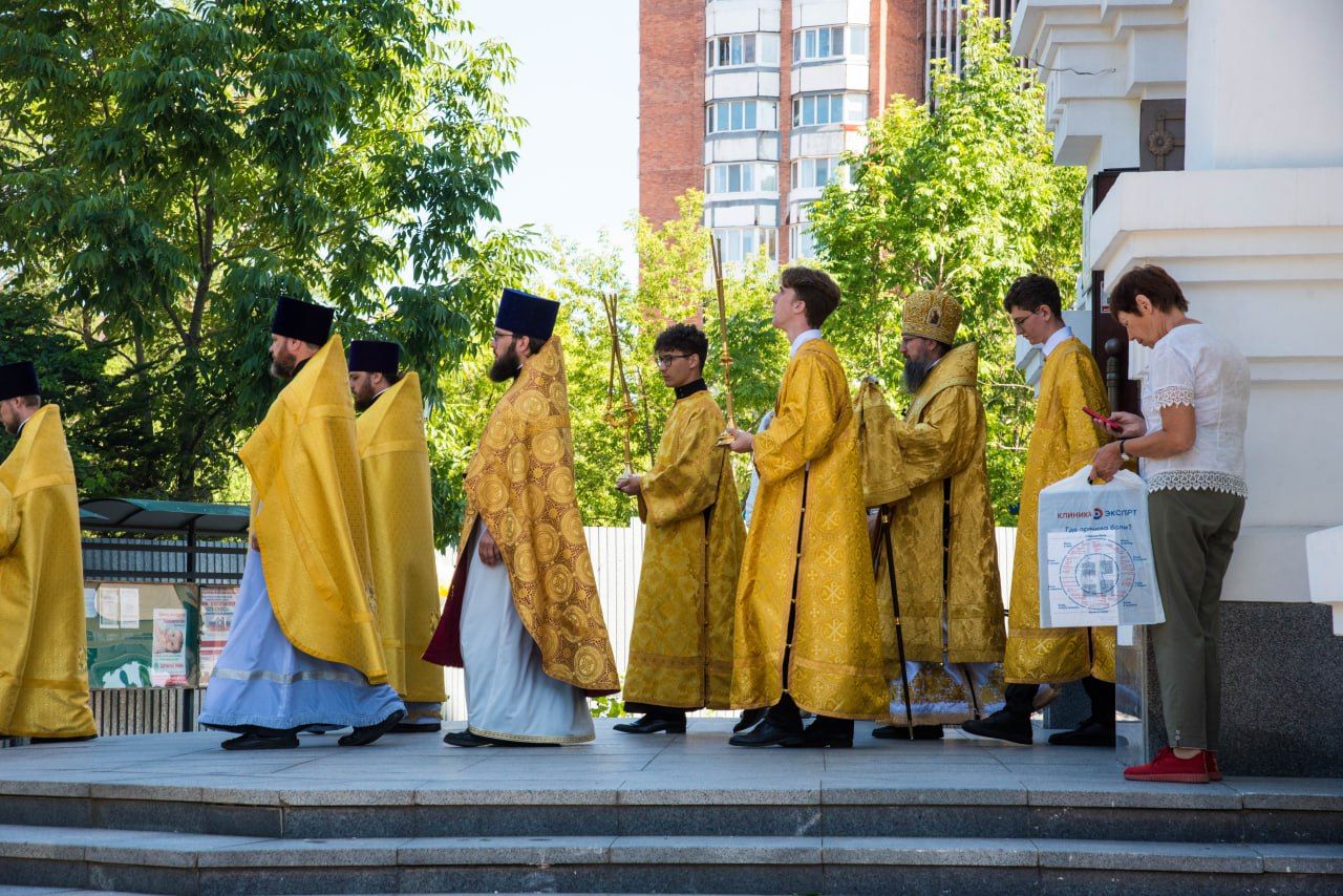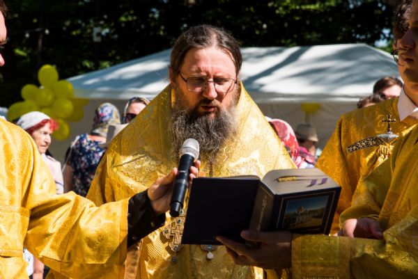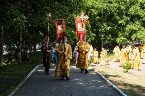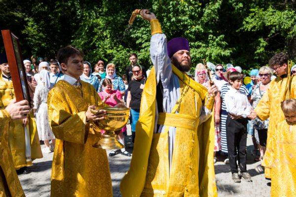 После Литургии все молящиеся прошли крестным ходом к памятнику благоверным князю Петру и княгине Февронии, установленному в центральной части Покровского парка и украшенному по случаю праздника. Здесь был совершён водосвятный молебен с прошениями о помощи и заступничестве перед Богом в различных нуждах и бедах, связанных с браком, семейной жизнью и воспитанием детей.