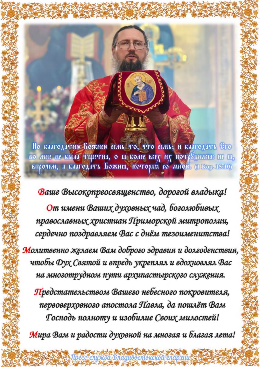 Митрополит Владивостокский и Приморский Павел совершил Божественную литургию в Спасо-Преображенском кафедральном соборе г. Владивостока