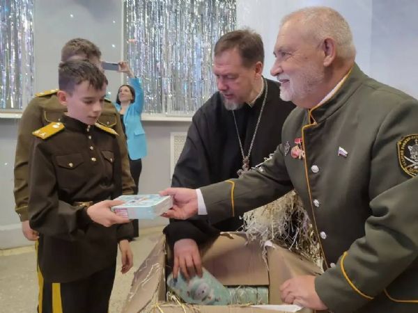 По окончании бала батюшка поблагодарил Валентина Михайловича за организацию мероприятия и вручил воспитанникам сладкие подарки.