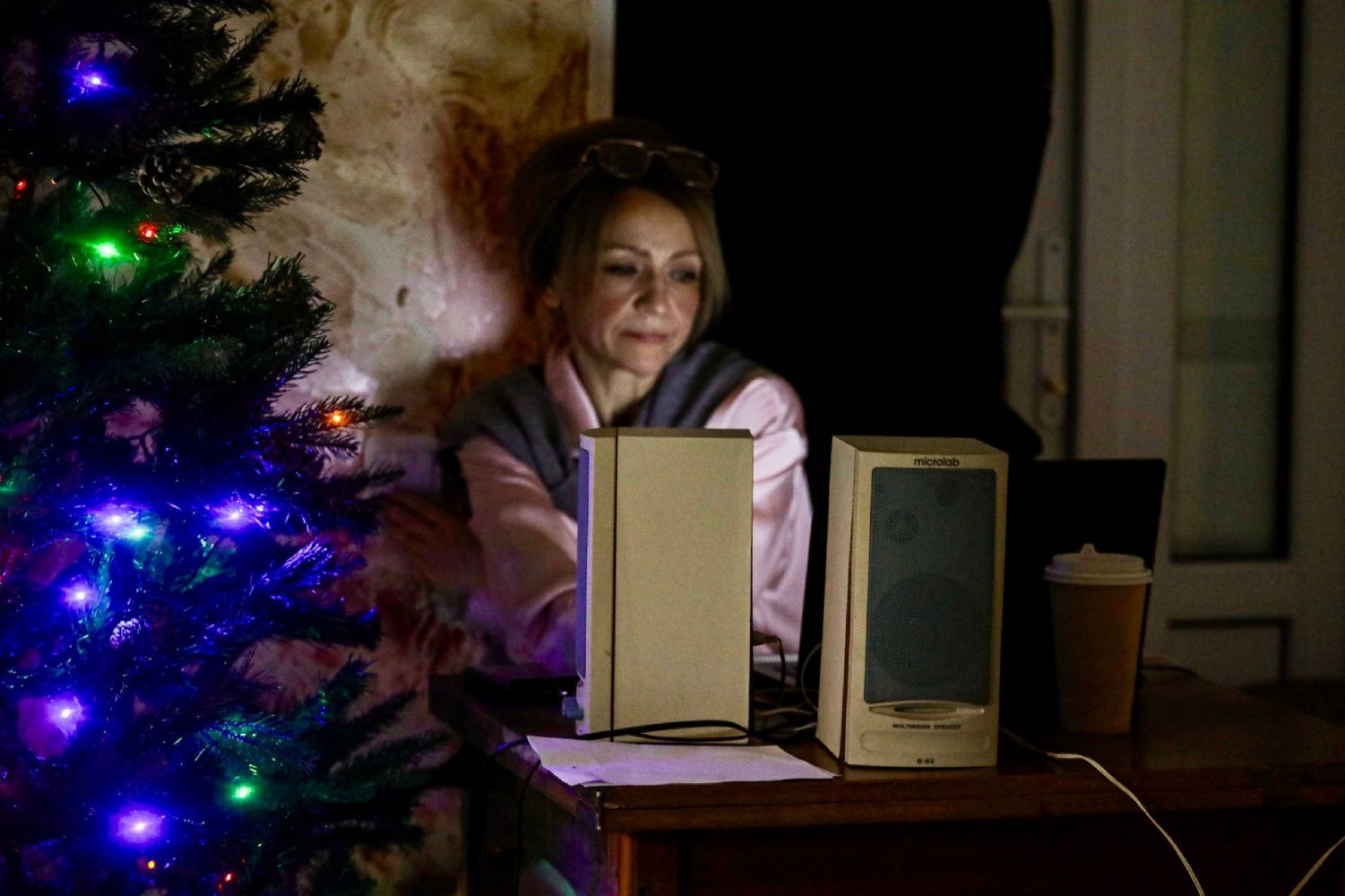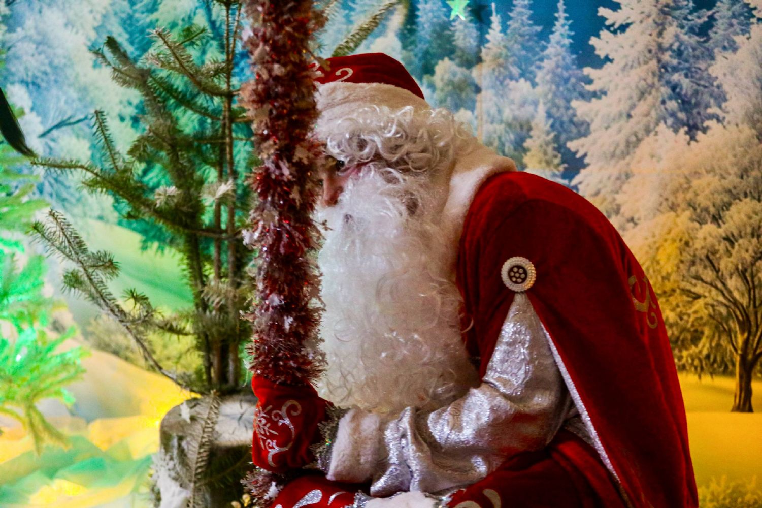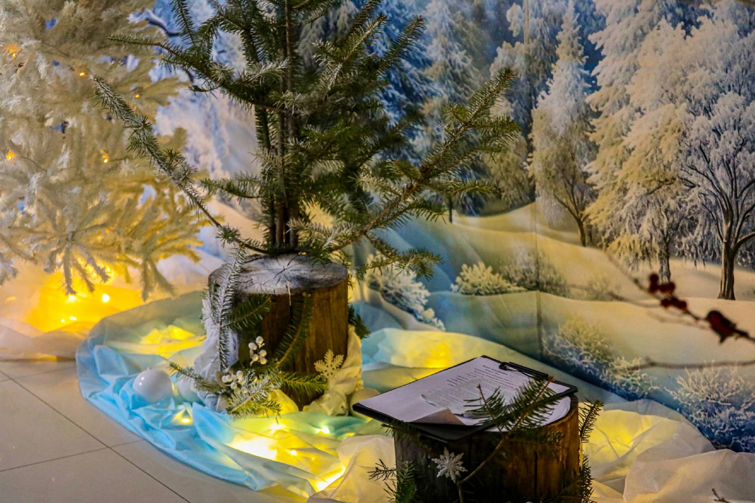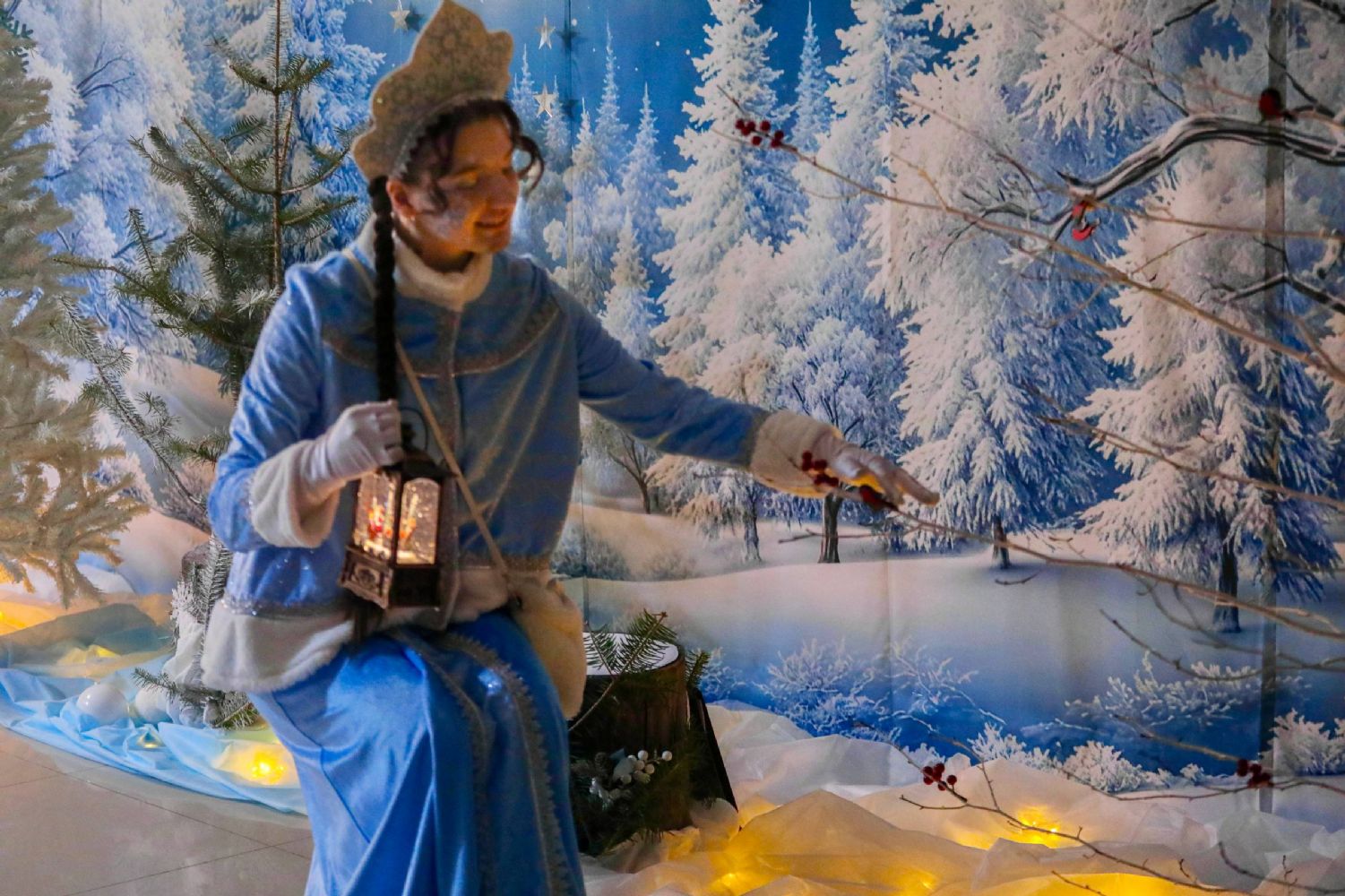 К Рождеству Христову храм был нарядно украшен: в центре установлен вертеп, елка сверкала тысячами огоньков, а Царские врата были обрамлены гирляндами из еловых ветвей.