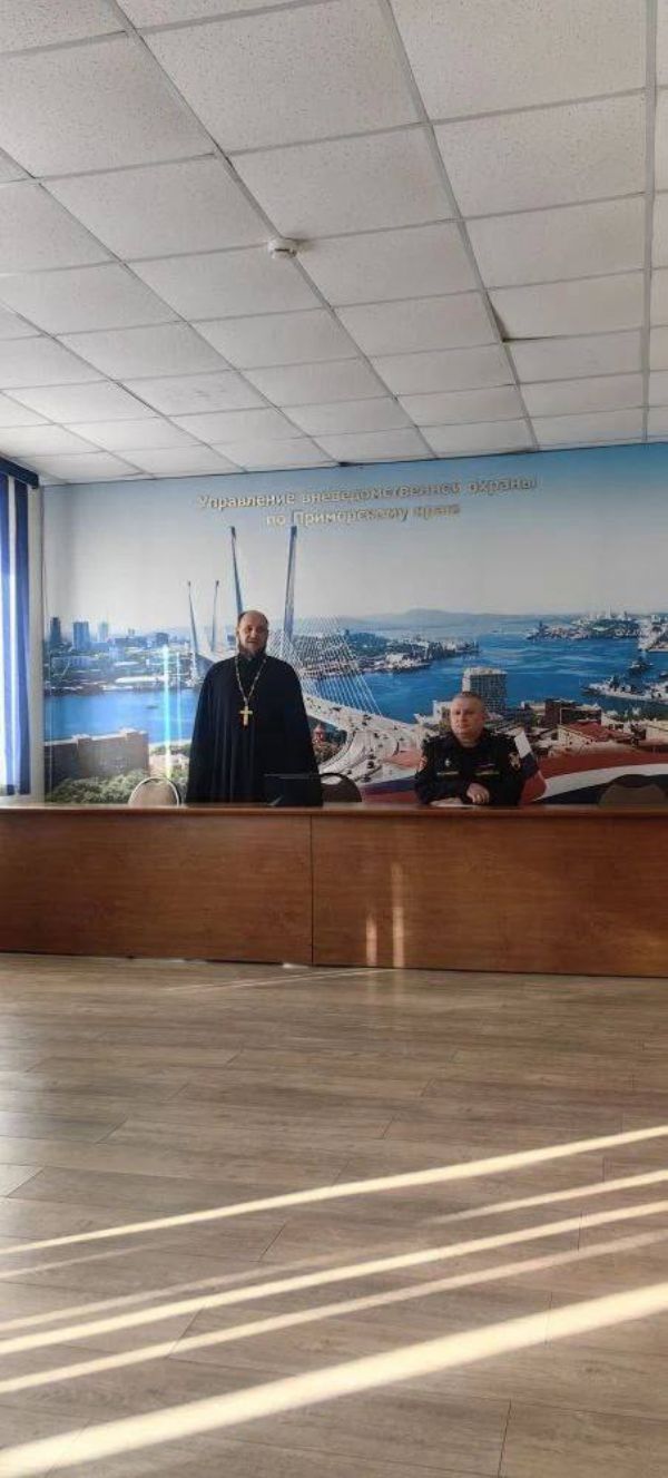 Беседу с офицерами и работниками Росгвардии провел руководитель миссионерского отдела Владивостокской епархии иерей Дионисий Ищенко. На встрече также присутствовал начальник Управления подполковник полиции Олег Коровицкий.