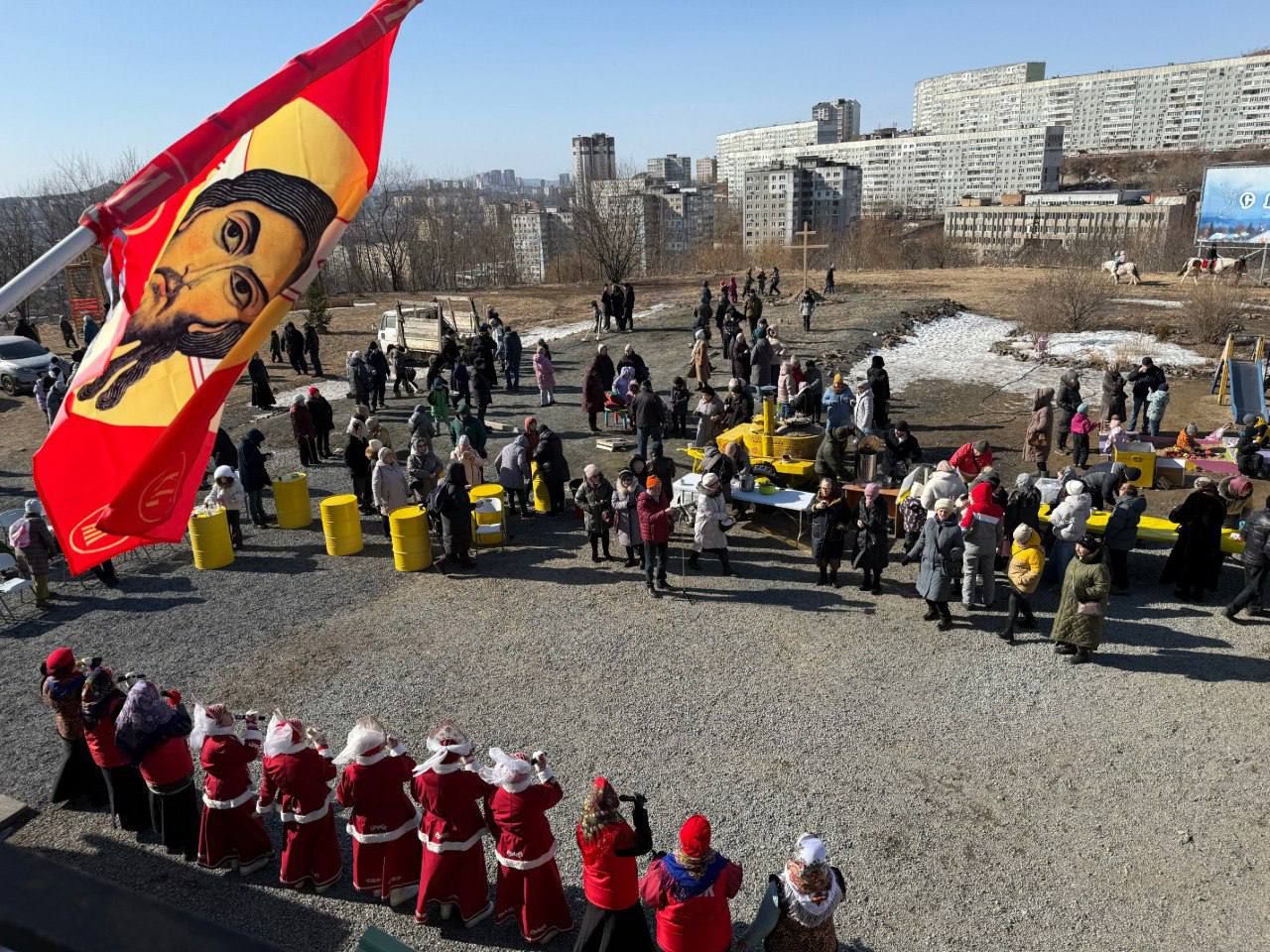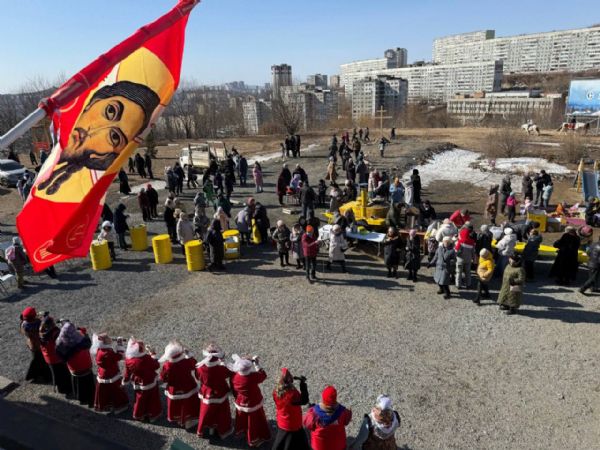 15 февраля на территории храма свт. Спиридона Тримифунтского г. Владивостока собрались прихожане и жители близлежащих домов, чтобы отметить праздник Сретения Господня.