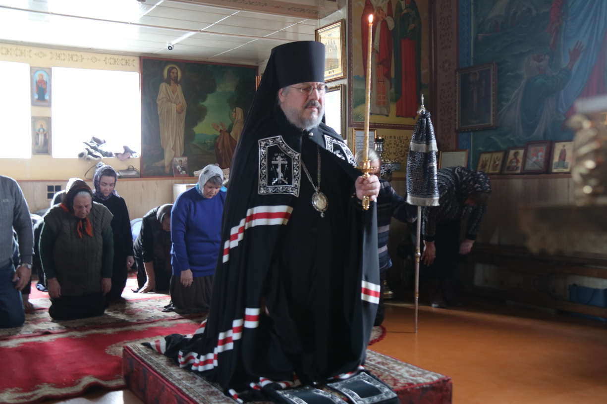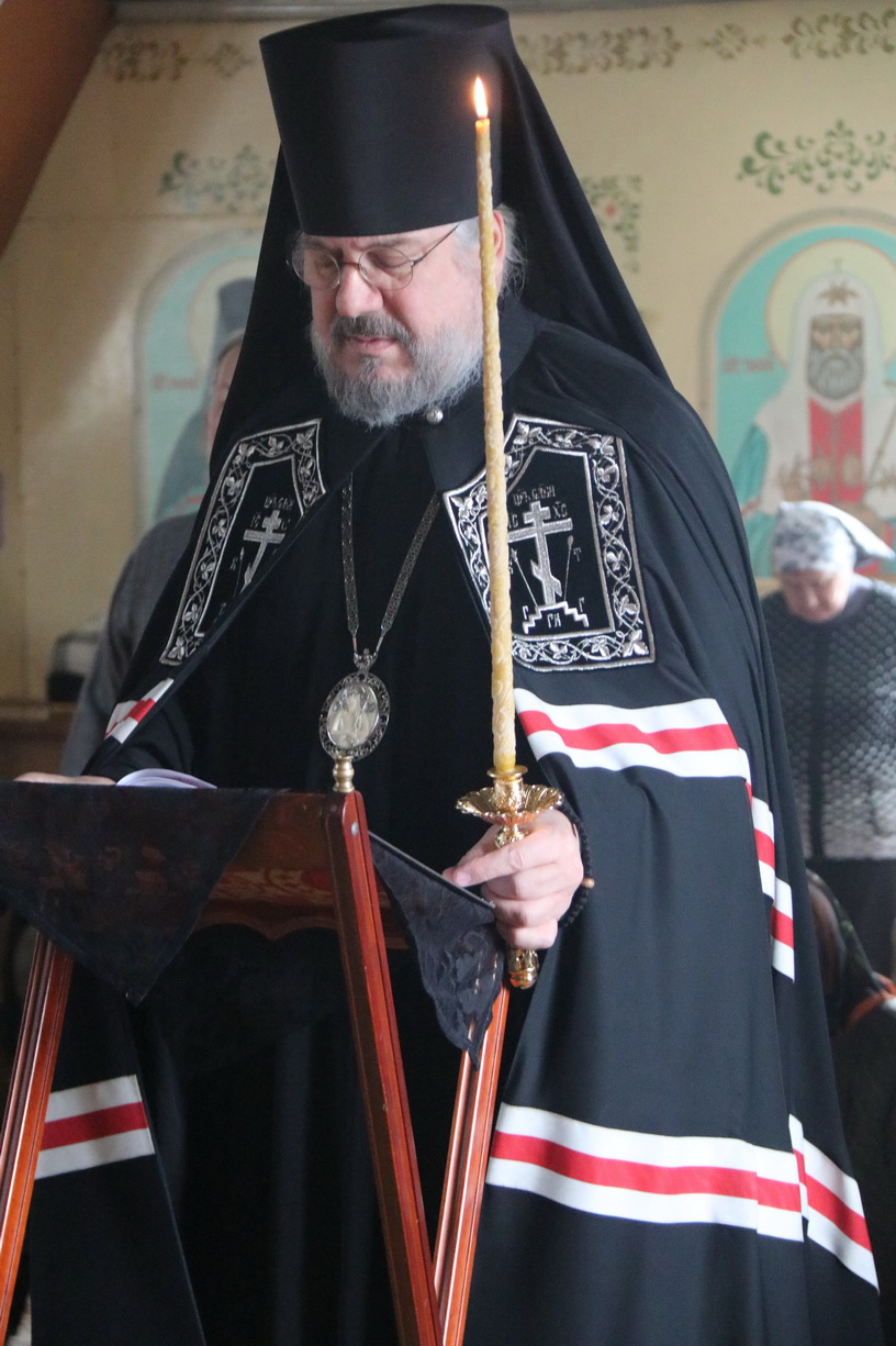 Его Преосвященству сослужил настоятель храма иерей Иоанн Капитанюк. По окончании богослужения Владыка обратился к прихожанам храма с проповедью и преподал всем свое архипастырское благословение.
