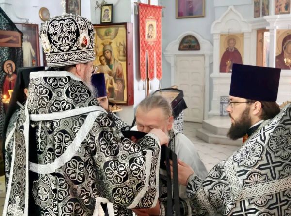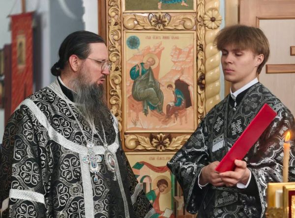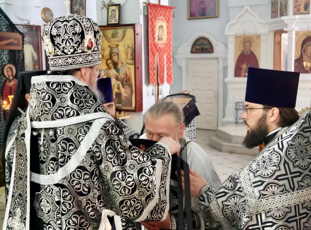 Во время Литургии владыка Павел наградил иерея Петра Косякова правом ношения палицы.