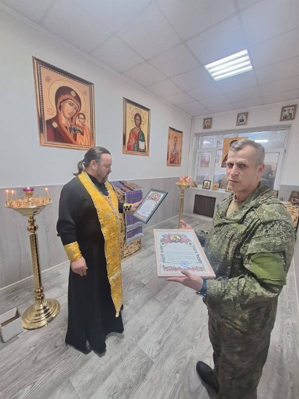 За помощь в организации постройки молитвенной комнаты протоиерей Лев Калачиков и матушка Вероника Калачикова были отмечены благодарственными письмами от командования 2-го санитарного полка.