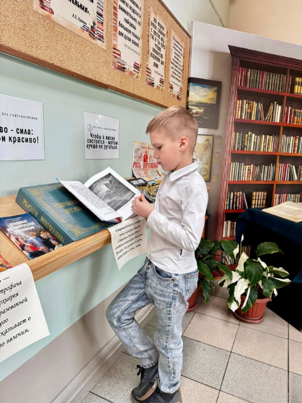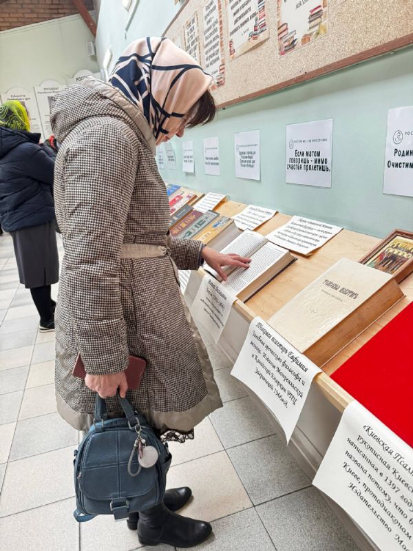 После беседы школьники посетили выставку «Духовное наследие в книгах и чтении», организованную ко Дню православной книги.