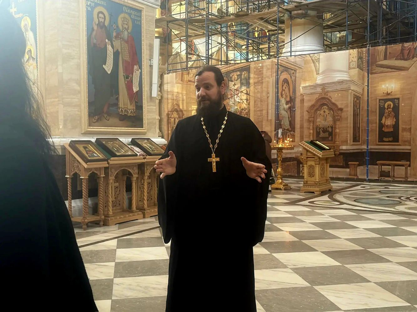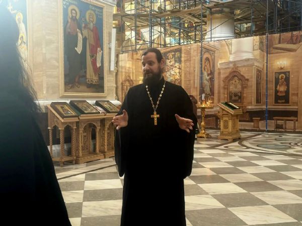 Юных гостей встретил иерей Владимир Ковальчук, руководитель отдела по вопросам семьи, защиты материнства и детства Владивостокской епархии. Священнослужитель рассказал школьникам о своём пути к вере, важности молитвы и устройстве храма.