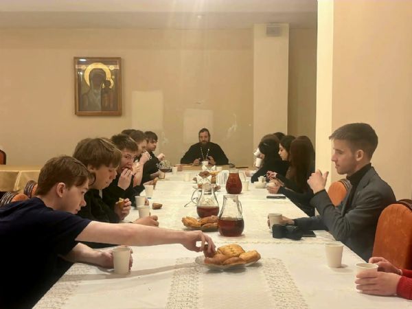 Завершилось мероприятие дружеской беседой за чашкой чая в трапезной. Школьники рассказали батюшке о своих учебных буднях, а отец Владимир, который сам учился в школе №17, поделился воспоминаниями о своих школьных годах и внеклассной жизни.
