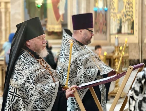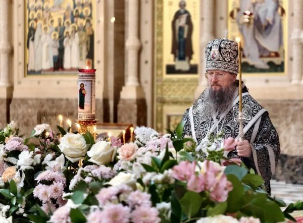 Его Высокопреосвященству сослужили: ключарь собора иерей Максим Точуков, игумен Атоний (Каменчук), иерей Димитрий Винокуров, иерей Димитрий Брызгалов, иерей Александр Соколов, протодиакон Адриан Чунчук и диакон Василий Талько.