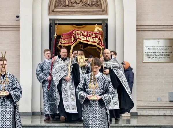 Вечером 10 апреля, в канун Великой Субботы, митрополит Владивостокский и Приморский Павел возглавил в Спасо-Преображенском кафедральном соборе г. Владивостока утреню с чином погребения плащаницы Христа Спасителя.