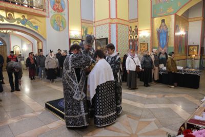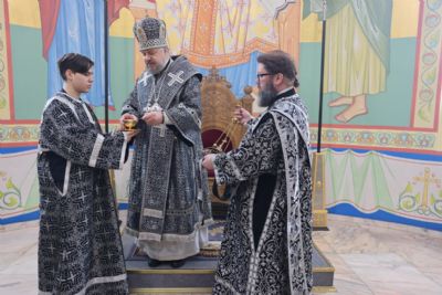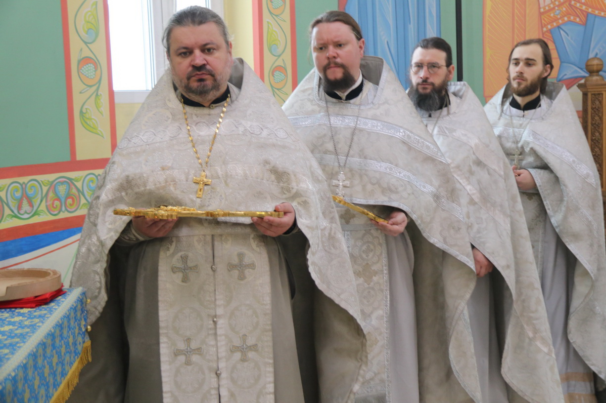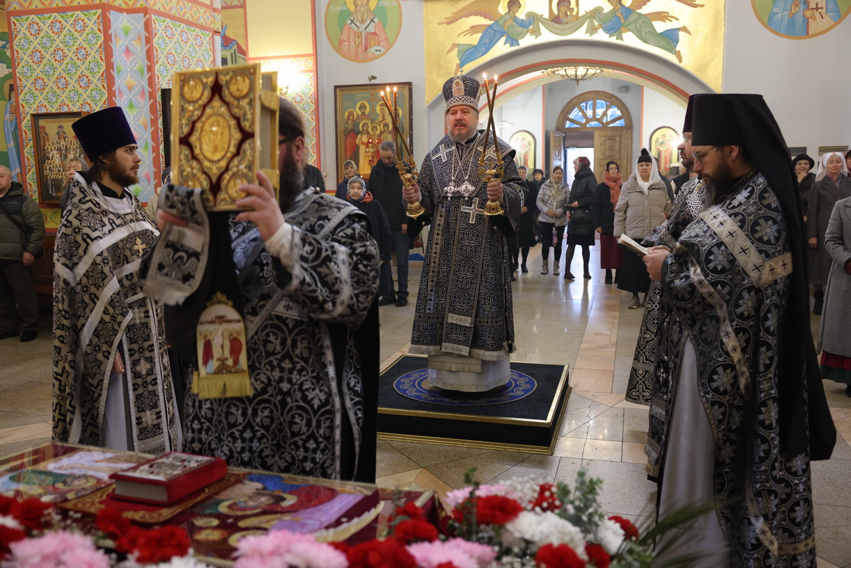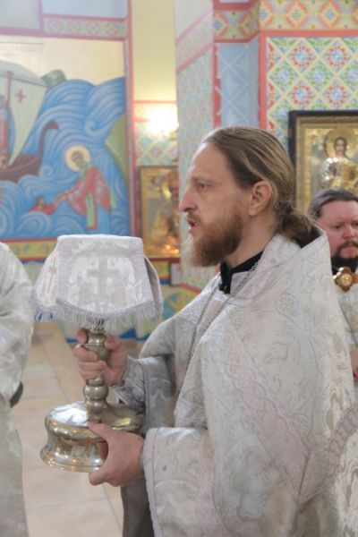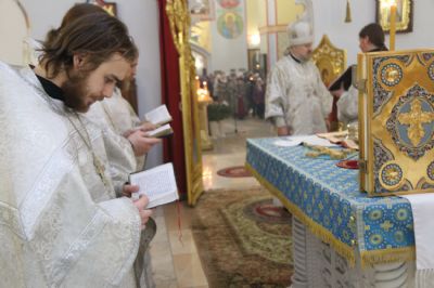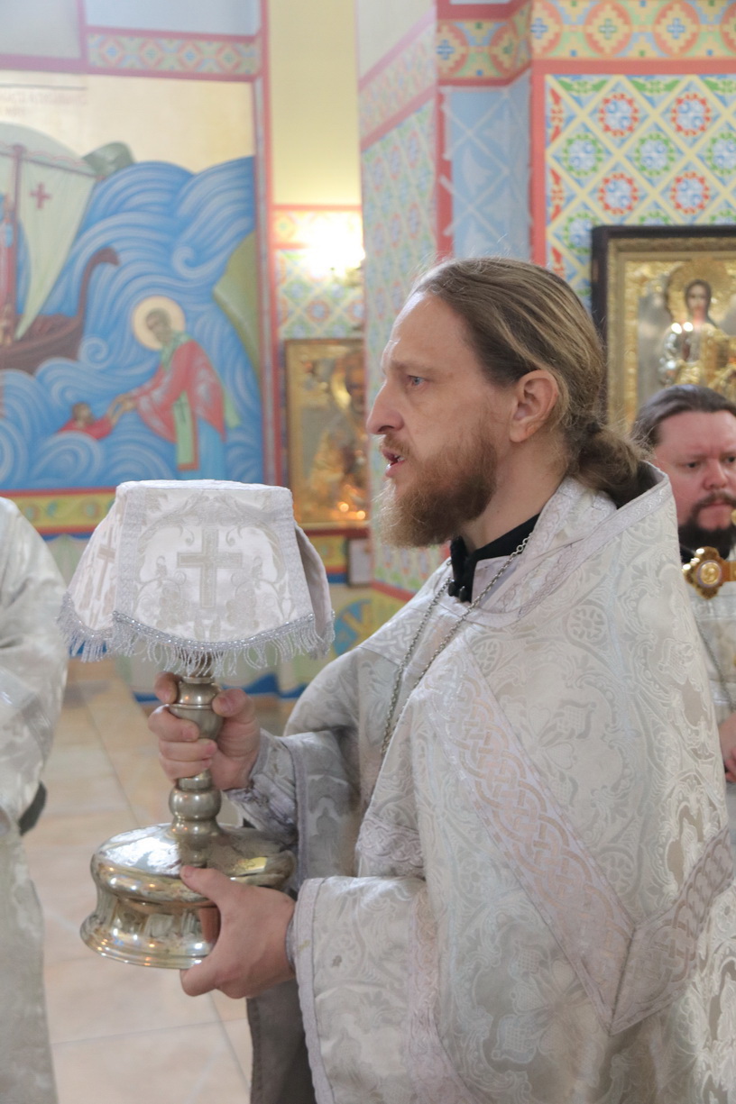 Его Преосвященству сослужили: иерей Андрей Калнин, ризничий Казанского собора; иерей Виталий Шаркеев; иерей Андрей Попов; иеромонах Ермоген (Крещенко) и иерей Илия Гречишников.