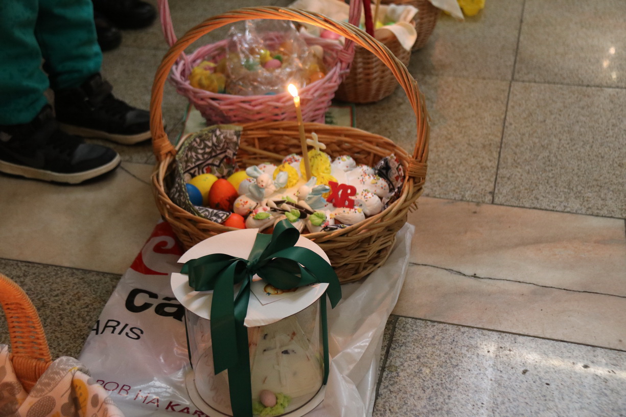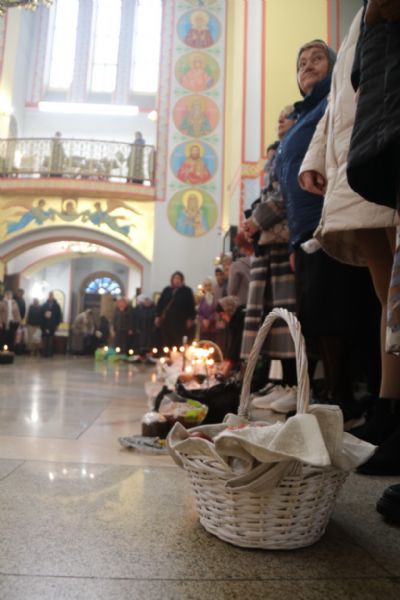 В Преблагословенную Субботу после завершения богослужения православные христиане приносят в храмы для освящения куличи, пасхи и крашеные яйца.