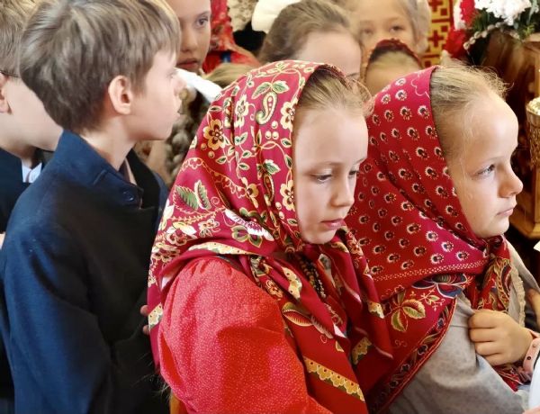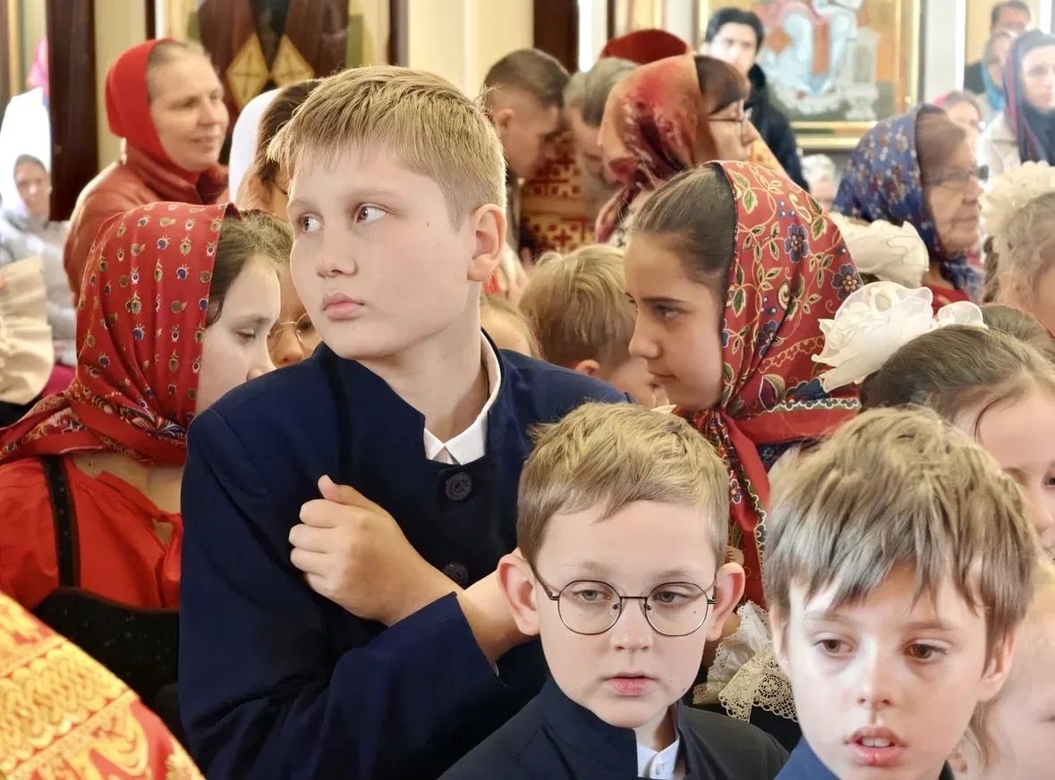 За богослужением молились ученики Православной гимназии в честь свв. равноапостольных Кирилла и Мефодия, среди были и самые маленькие — первоклассники.