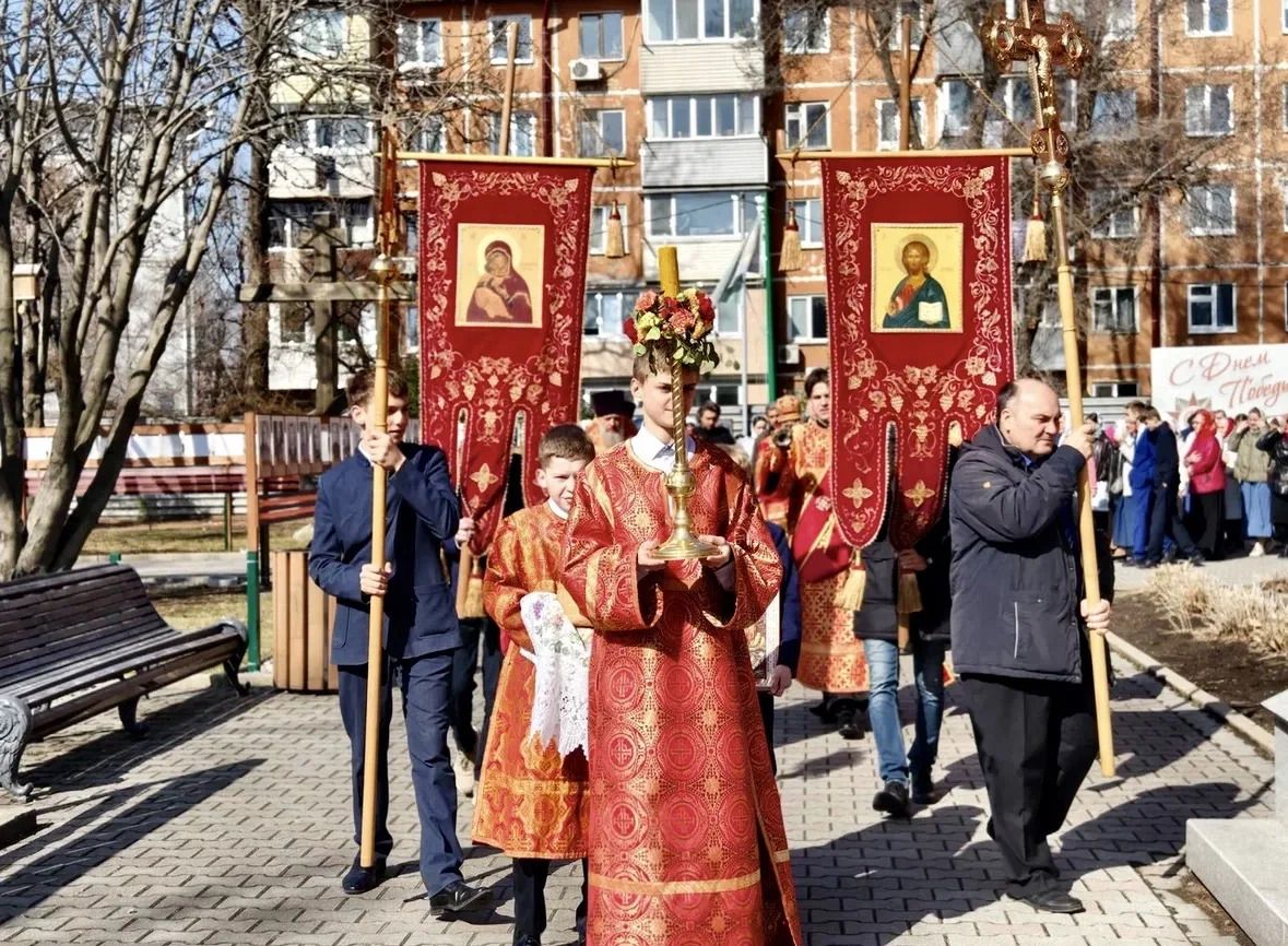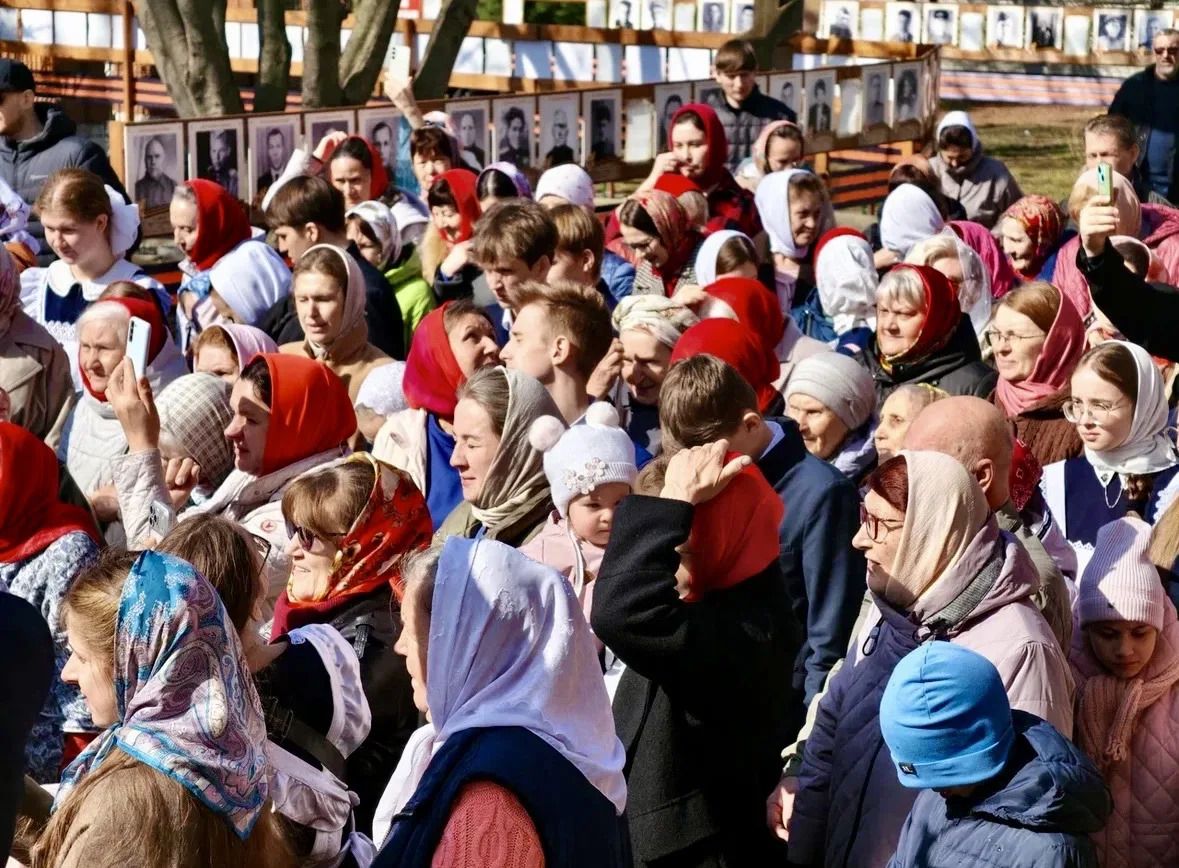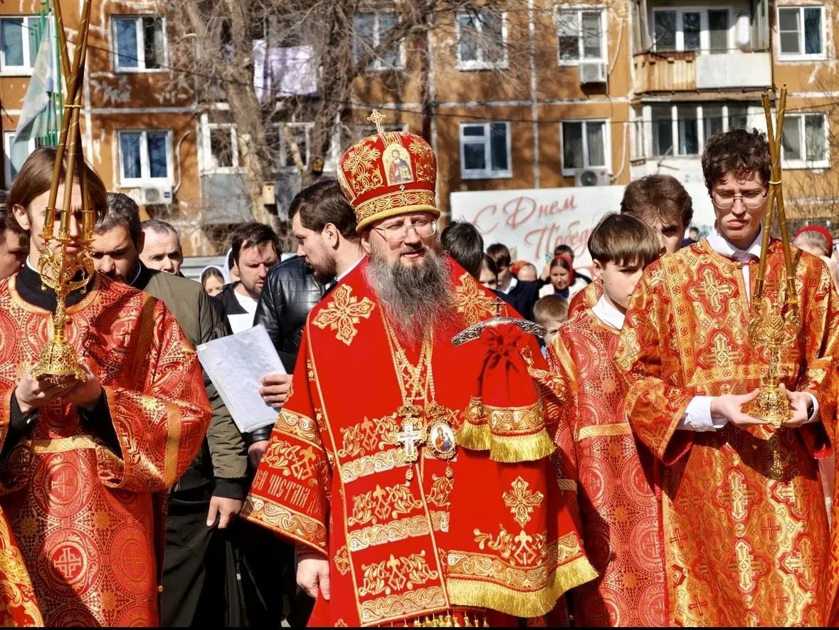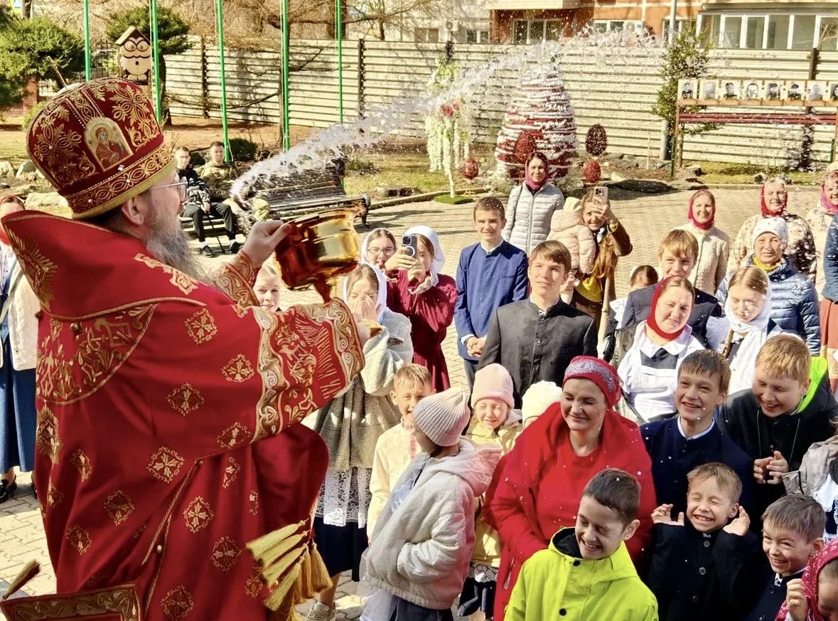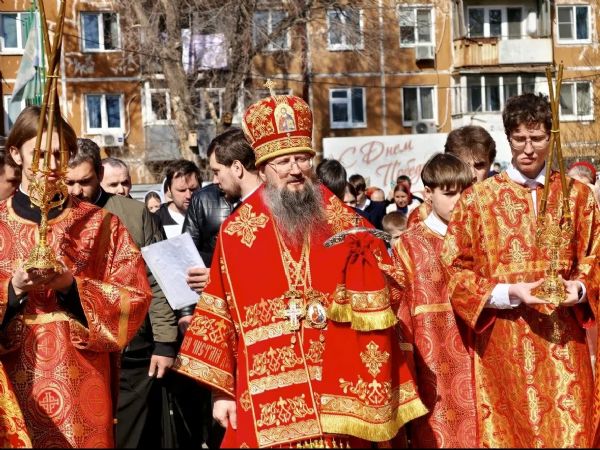 По окончании Литургии владыка Павел, духовенство и прихожане совершили крестный ход вокруг храма, во время которого верующих окропляли святой водой.