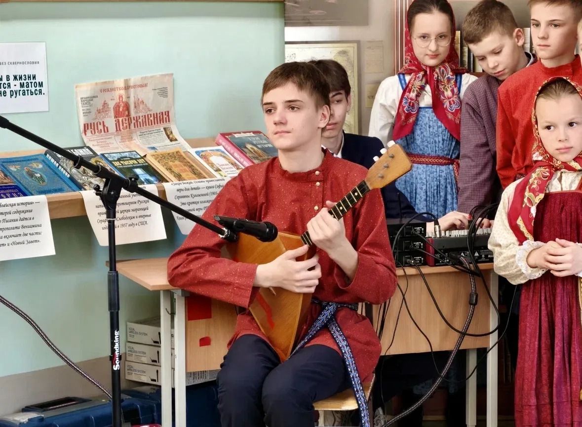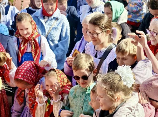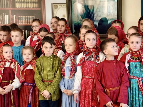 После богослужения ансамбль из учеников гимназии поздравил владыку со Светлым Христовым Воскресением.