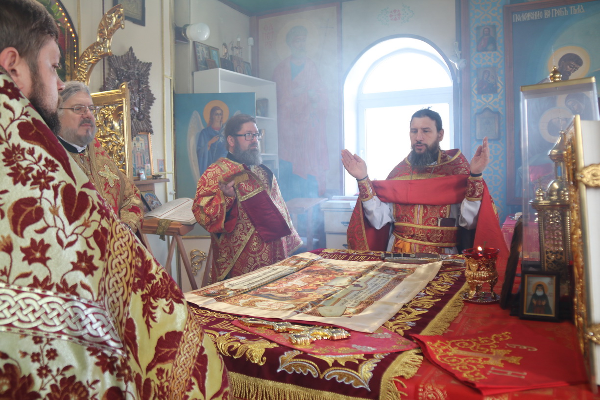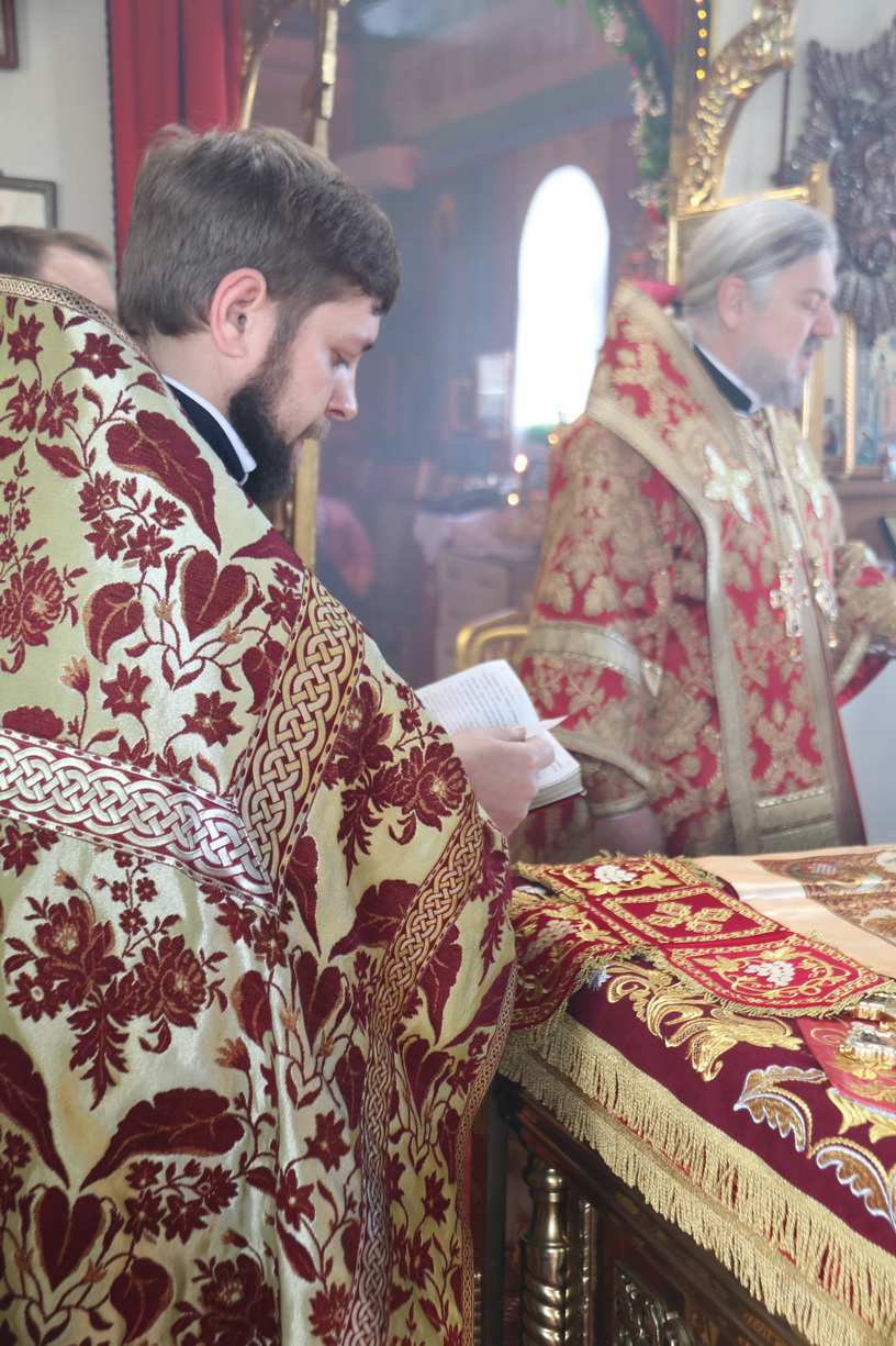Его Преосвященству сослужили: настоятель Свято-Рождественского храма, иерей Иоанн Капитанюк и иеромонах Ермоген (Крещенко), клирик Казанского Казанского кафедрального собора г. Находки.