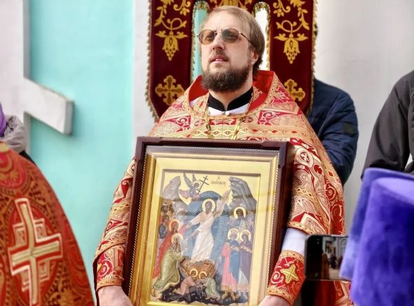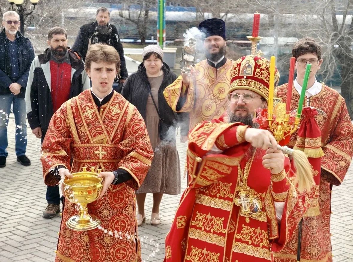Праздничное богослужение завершилось крестным ходом вокруг храма, во время которого прихожан кропили святой водой.