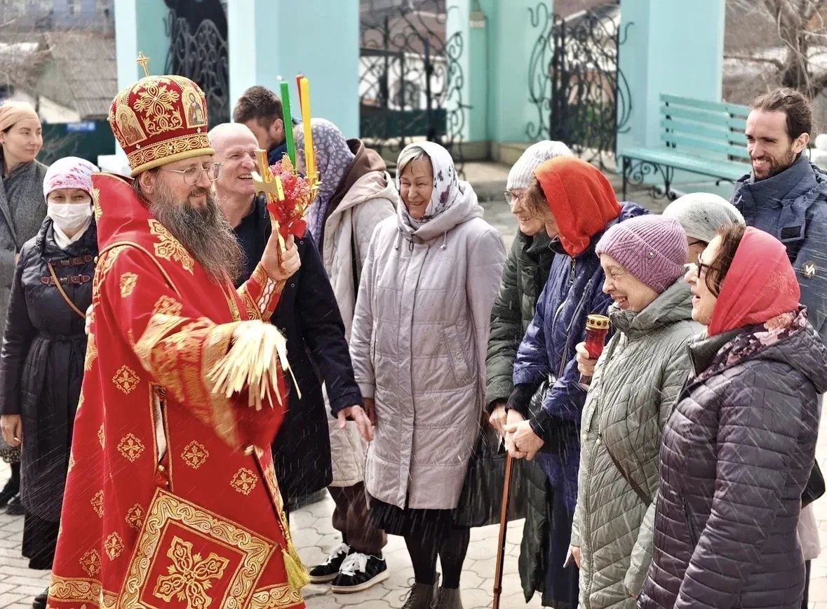 - Господь, кроме всего видимого мира, нашего богатого внутреннего мира, даровал и Самого Себя. Не только всё Свое творение подарил, а подарил Себя как Творца людям. Имея совершенно бескорыстную, жертвенную любовь, Господь всего Себя отдает людям. Мы сегодня имеем ту радость, которая начинается здесь, на земле, сопровождает нас и переходит с нами в вечность. Вот этот залог вечной радости мы имеем особенно в Пасхальные дни. Будем прославлять Бога, пострадавшего за нас и воскресшего из мертвых, — сказал владыка Павел.