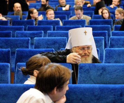 Вечером 4 декабря в Кремлевском Дворце съездов прошел праздничный концерт в честь памятной даты, где присутствовали зарубежные гости, епископат, священнослужители, прихожане московских храмов и др.