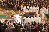 «Мы не осознаем той утраты, которую понесла сегодня вся Россия, — продолжил иерарх. — Но все было бы так безутешно, если бы мы не были людьми верующими, если бы мы не знали о том, что есть жизнь вечная, и Бог наш не бог мертвых, но Бог живых. Именно потому случилось так, что последний вздох ее жизни был сопровожден молитвой. И сегодня, стоя у ее гроба, мы разговариваем молитвенно с ней. Просим, чтобы она свои молитвы о нас устремила к Богу, чтобы Он был милостив к ней и милостив к нам. Чтобы не оскудела наша земля великими, талантливыми, самоотверженными людьми. Чтобы мы могли достойно хранить то, что она оставила нам. И не только хранить, но и приумножать своими делами».