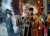 12 апреля, в день праздника Светлого Христова Воскресения, Святейший Патриарх Московский и всея Руси Кирилл совершил Пасхальную великую вечерню в кафедральном соборном Храме Христа Спасителя в Москве.