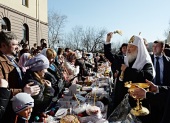 13 апреля Святейший Патриарх Кирилл посетил площадку «Стрелецкая слобода» фестиваля «Пасхальный дар» на улице Кузнецкий мост в Москве. Фестиваль организован столичной мэрией совместно с Московской Патриархией.