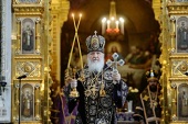 8 апреля, в среду Страстной седмицы, Святейший Патриарх Московский и всея Руси Кирилл совершил последнюю в этом году Литургию Преждеосвященных Даров в кафедральном соборном Храме Христа Спасителя г. Москвы.