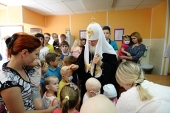 Святейший Патриарх Кирилл осмотрел отделение детской онкологии, гематологии и аллерго-иммунологии и пообщался с маленькими пациентами и их родителями.