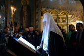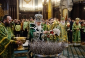 23 апреля, в канун Недели 6-й Великого поста (ваий), празднования Входа Господня в Иерусалим, Святейший Патриарх Кирилл совершил всенощное бдение в кафедральном соборном Храме Христа Спасителя.