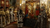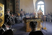 25 апреля, в понедельник Страстной седмицы, Святейший Патриарх Кирилл совершил Литургию Преждеосвященных Даров в храме Казанской иконы Божией Матери Богородице-Рождественского ставропигиального женского монастыря г. Москвы.