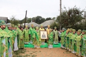 25 сентября, в Неделю 14-ю по Пятидесятнице, пред Воздвижением, Святейший Патриарх Кирилл совершил чин великого освящения храма Всех святых, в земле Российской просиявших, — Патриаршего подворья в Новокосино, построенного в рамках ...
