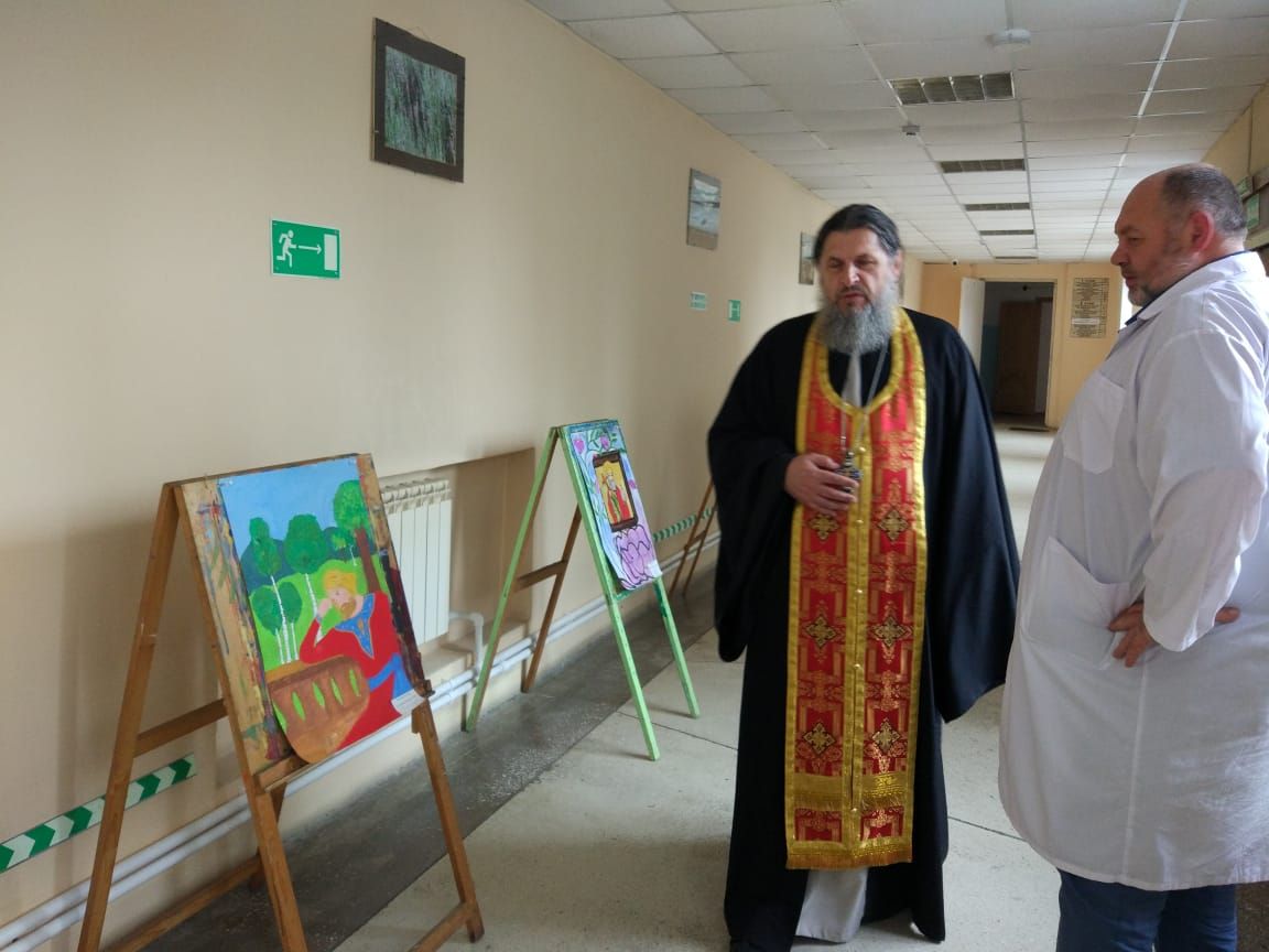 А на торжественной церемонии открытия выставки протоиерей Александр Талько, руководитель отдела по церковной благотворительности и социальному служению Владивостокской епархии, отслужил молебен и побеседовал с больными и персоналом больницы.