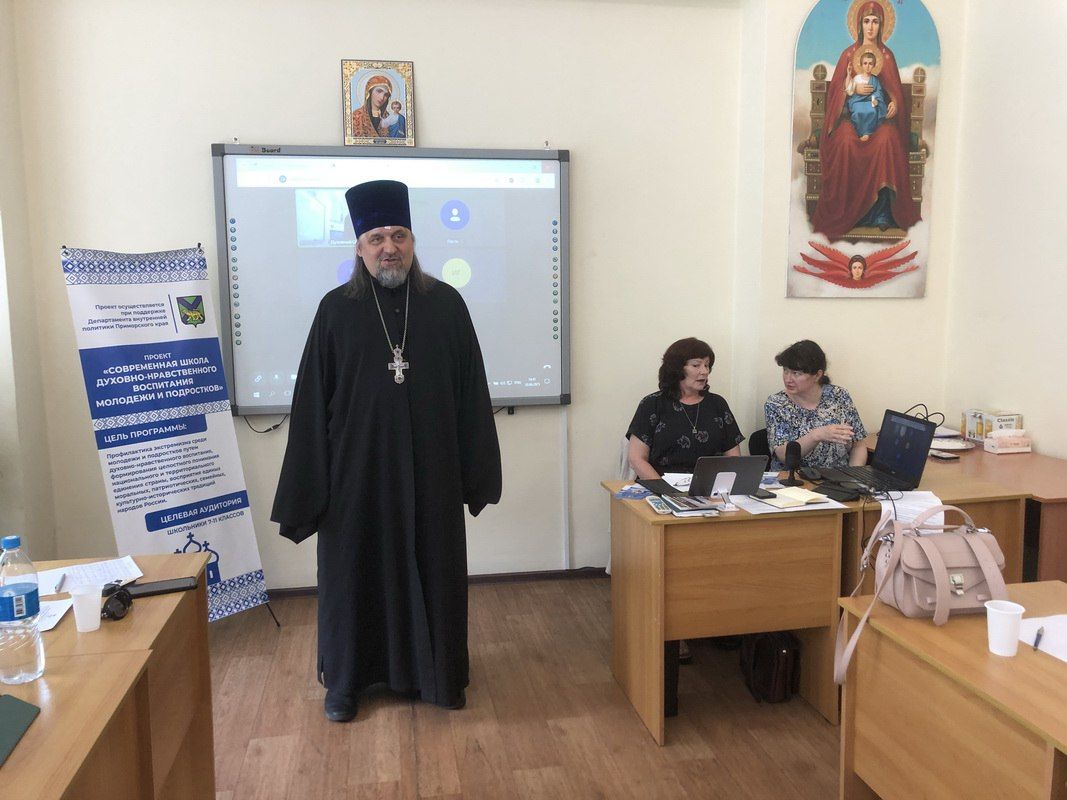 В работе собрания приняли участие: Нефедьева М. И., руководитель Проекта, специалист ОРОиК Владивостокской епархии; настоятель храма святителя Николая Чудотворца (бухта Диомид) протоиерей Даниил Нефедьев; настоятель храма Богоявления г. Артёма иерей Дионисий Ищенко; настоятель Свято-Никольского собора г. Владивостока, благочинный Никольского благочиния иерей Михаил Тутаев; главный специалист отдела изучения гражданского общества КГАУ "Приморский научно-исследовательский центр социологии и гражданских инициатив" Бондарчук Татьяна Анатольевна; старший преподаватель кафедры педагогики и психологии воспитания ПКИРО Титарова О. В.; кандидат философских наук, заведующий кафедрой философии Института истории, археологии и этнографии ДВО РАН Андрей Владимирович Поповкин; директор МБОУ ВСОШ № 1 Уссурийского городского округа, с. Воздвиженка, Гаджиева Ирина Владимировна; педагог МБОУ СОШ № 2 г. Владивостока Брыжеватая Наталья Алексеевна; педагог МБОУ СОШ № 2 п. Раздольное Надеждинского муниципального округа Драгина Валентина Александровна; руководитель курсов «Основы православной веры», методист епархиального отдела образования Латышева И. С., учёный секретарь Центра подготовки церковных специалистов Солоненко Л. В. и другие участники проекта. Онлайн присутствовали преподаватели Артемовского, Уссурийского, Лесозаводского ГО.
