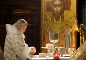 Утром 6 января, в навечерие Рождества Христова (Рождественский сочельник), Святейший Патриарх Кирилл совершил великую вечерню и Божественную литургию святителя Василия Великого в кафедральном соборном Храме Христа Спасителя в Москве.