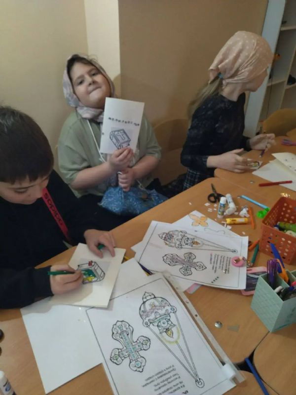 Для юных прихожан был организован мастер-класс «Мой молитвослов» по созданию собственной книги. Под руководством наставника малыши аккуратно собирали страницы будущей книги, украшали обложку и вместе вспоминали знакомые молитвы.