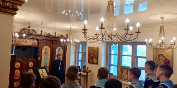 Курсанты внимательно слушали, с интересом изучали устройство храма, рассматривали иконы. По окончании экскурсии ребята задали интересующие вопросы и поблагодарили батюшку за интересную и познавательную встречу.