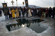 Праздник Крещения Господня на реке Сучан Великое освящение воды на праздник Крещения Господня состоялось на реке Сучан близ с. Владимиро-Александровское 19 января 2004 г. Настоятель храма Успения Пресвятой Богородицы иерей Андрей Гречишников. |