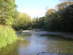 Первый брод (мост), здесь река может выходить из берегов Развилка, налево - дорога на Ольховую, направо, через мосток - на пещеры
