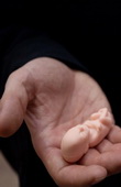 Одним из самых эффективных наглядных пособий в работе по профилактике абортов являются модели эмбрионов – резиновые пупсы. Масштаб модели один к одному. Глядя на искусственный эмбрион, который соответствует 3–4-месячному малышу в утробе матери, можно увидеть, что это уже вполне полноценный человек. 12-недельный «малыш-эмбрион» легко помещается в руке, точно такого же размера он в утробе матери. Младенец уже практически сформировался, у него бьется сердечко.