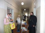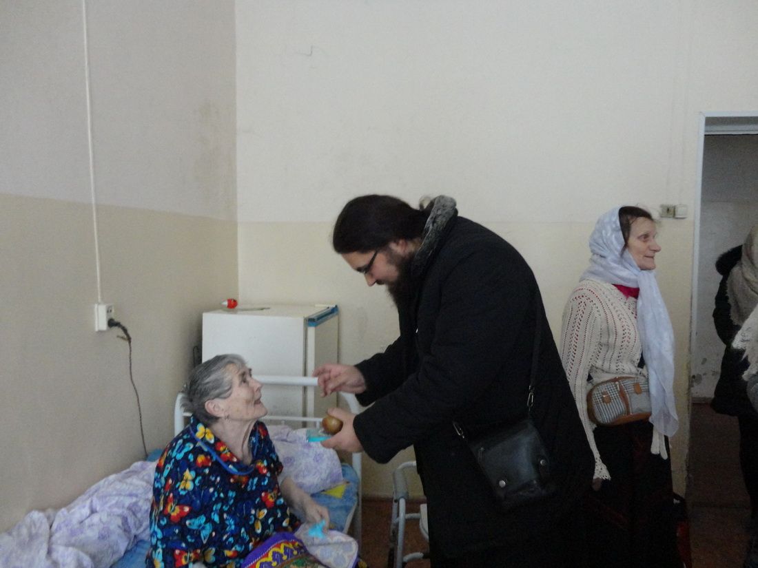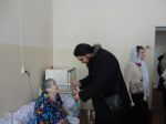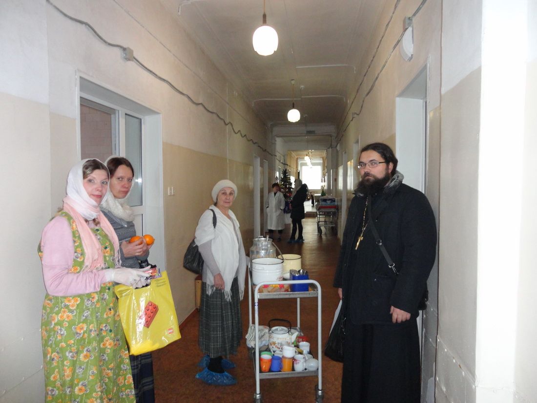 – В больницах. Стараемся каждый праздник побывать в Сестринском отделении 4-й городской больницы города Владивостока (на фотографиях мы именно там). Сестры Успенского храма посещают эту больницу уже много лет. В последние три года палаты в отделении выглядят вполне прилично, но наши сестры помнят другую картину. Осыпающаяся штукатурка, стены в пятнах плесени, но особенно страшно было в коридоре: прогнивший пол покрывали снятые с петель двери, скользкие, разъезжающиеся в стороны. Санитарки боялись там ходить, а каково же было больным!? И это отделение хотели закрыть. Наши сестры боролись, чтобы отделение не закрыли, так как там живут бездомные. Теперь всё, слава Богу, утряслось. В палатах сделали ремонт. А многих наших подопечных (бездомных инвалидов) перевели на остров Попова.