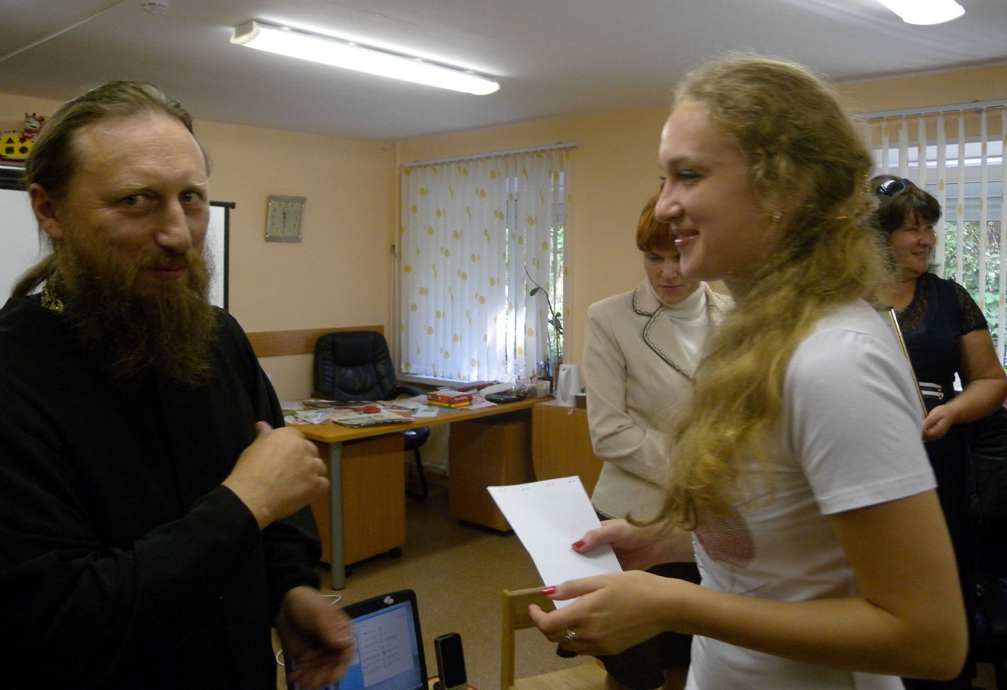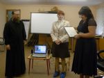 От епархиальной комиссии защиты материнства и детства священник вручил психологам денежные премии.