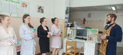 Настоятель храма Рождества Христова г. Находки иерей Иоанн Капитанюк посетил городской родильный дом и поздравил рожениц со Светлым Воскресением Христовым.