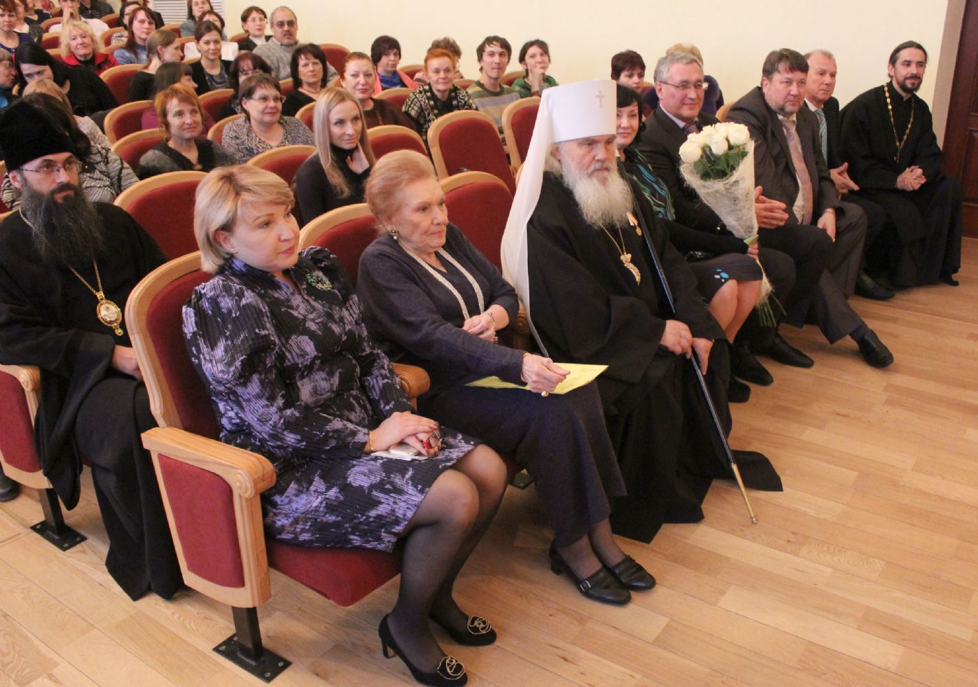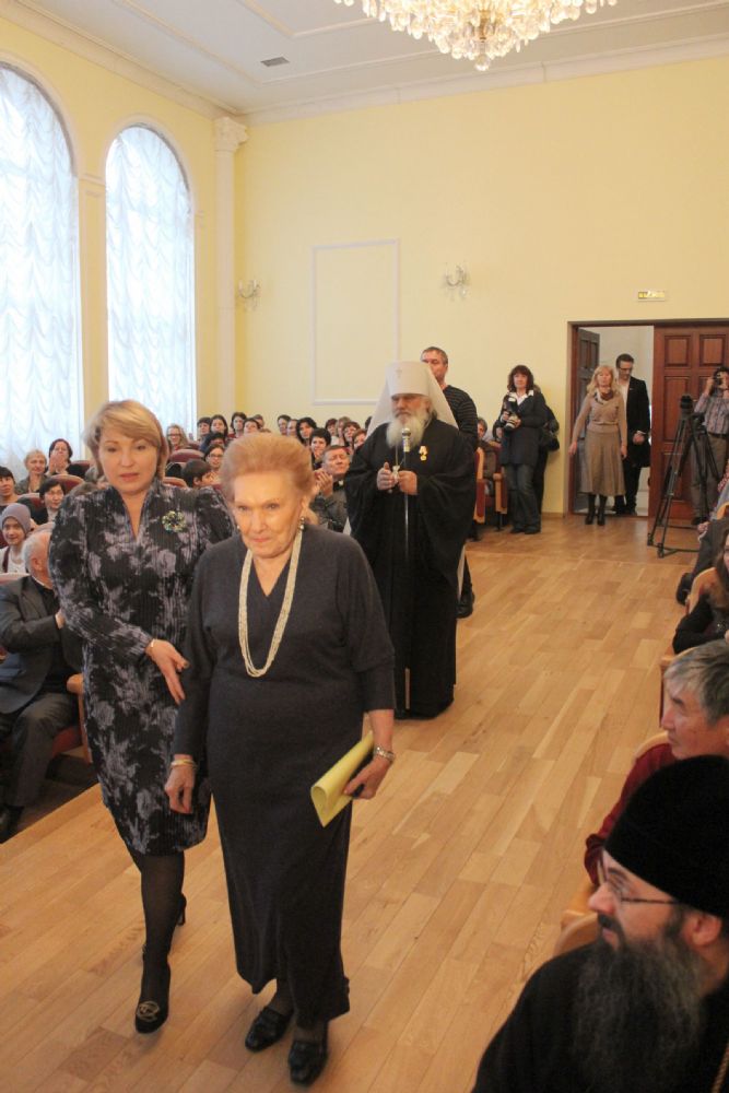 На следующий день, 28 февраля, в зале Детской школы искусств № 1 имени Сергея Прокофьева состоялся Торжественный вечер, гостями которого стали порядка 250 человек. Открыла вечер Предначинательная молитва в исполнении Архиерейского хора (регент Л.И. Макаренко).