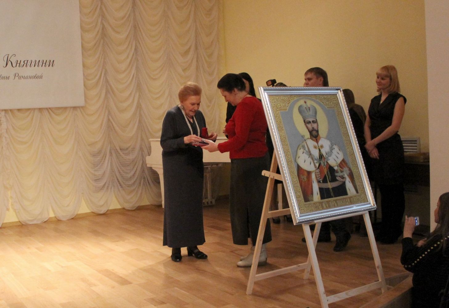 В завершение вечера председатель Благотворительного фонда им. Ея Императорского Высочества Великой Княгини Ольги Александровны – Ольга Николаевна Куликовская-Романова вручила награды за внимание к 400-летнему юбилею Династии Романовых заместителю главы Владивостока Елене Борисовне Щёголевой, а также представителям общественности и Владивостокской епархии.