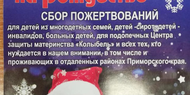 Подарки можете опустить в корзину в Покровской храме г.Владивостока (Океанский проспект, 44)