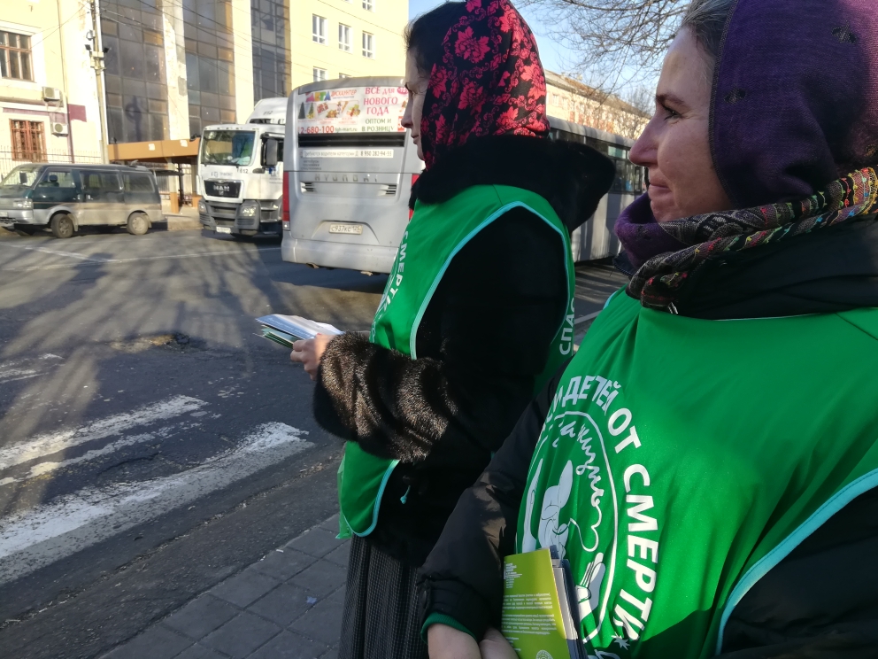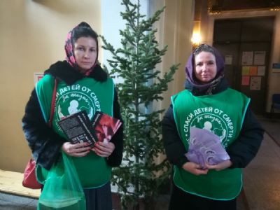 Активисты российского движения «За жизнь» раздали листовки о сохранении жизни, показали макеты эмбрионов, по которым видно, что даже на ранних сроках беременности это маленький человек.