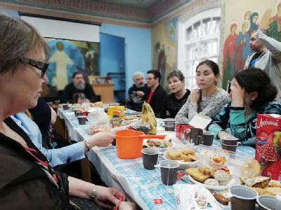5 марта 2019 года на приходе храма Покрова Божией Матери города Владивостока состоялось очередное собрание добровольцев, которое проводил руководитель отдела по церковной благотворительности и социальному служению протоиерей Александр Талько. На собрании присутствовали около 20 человек добровольцев.